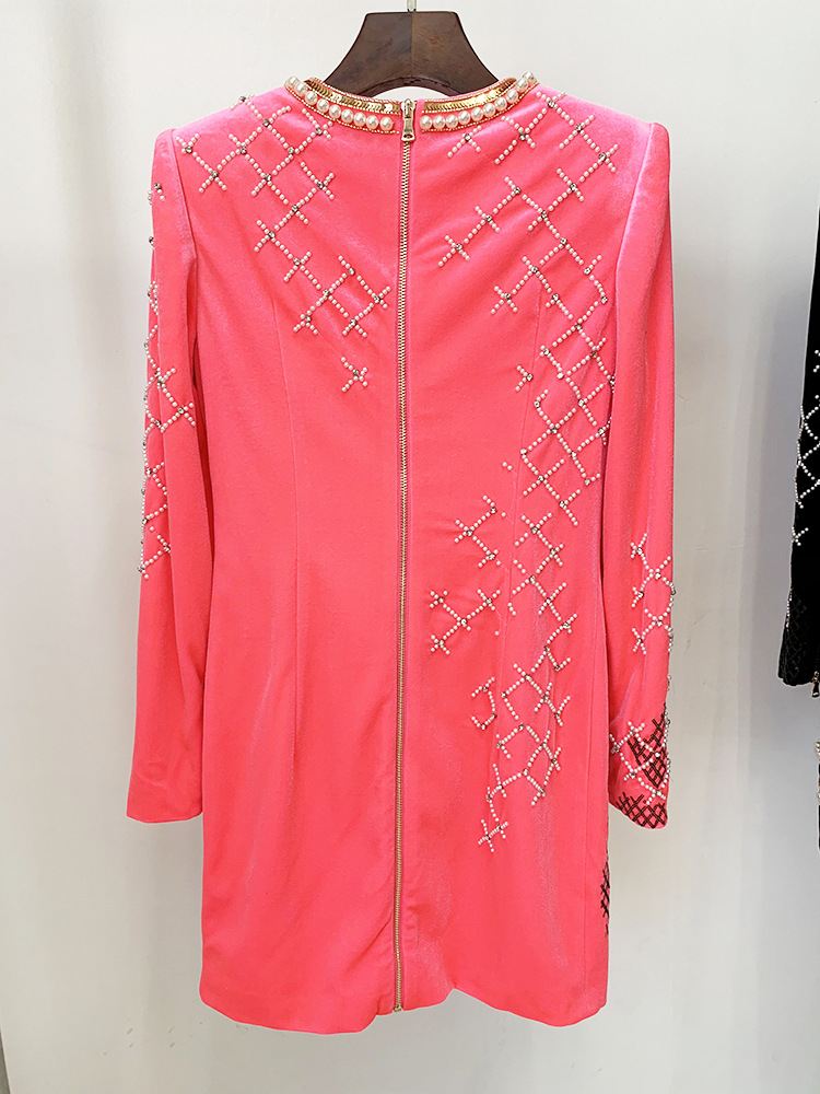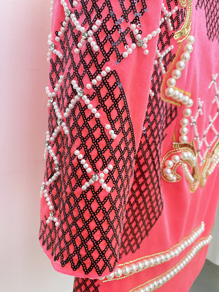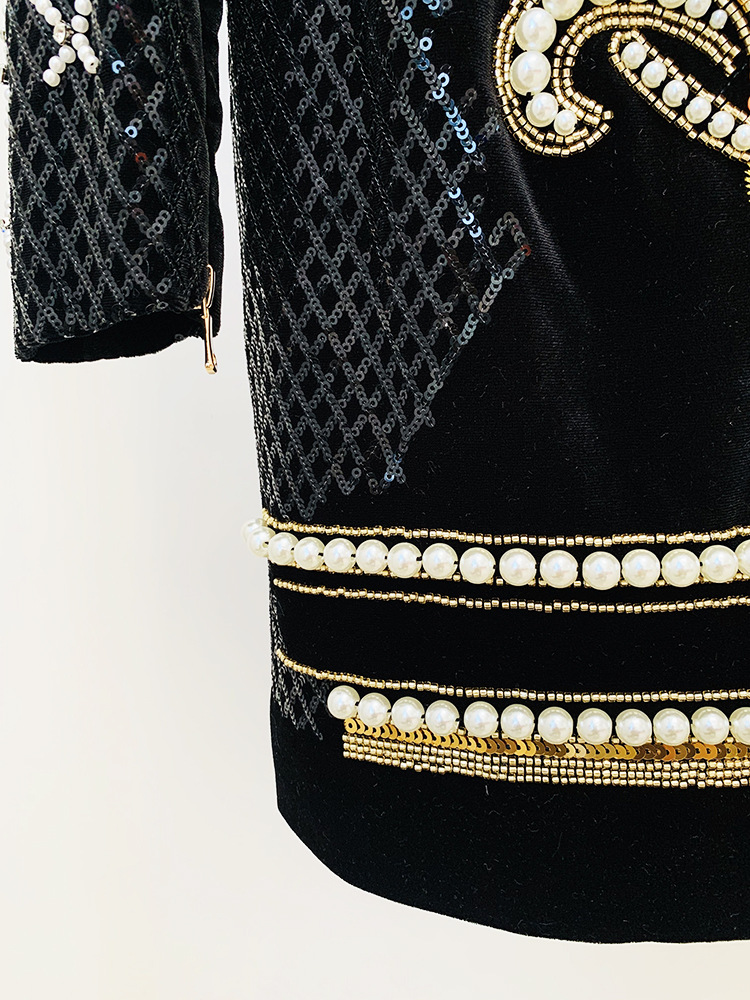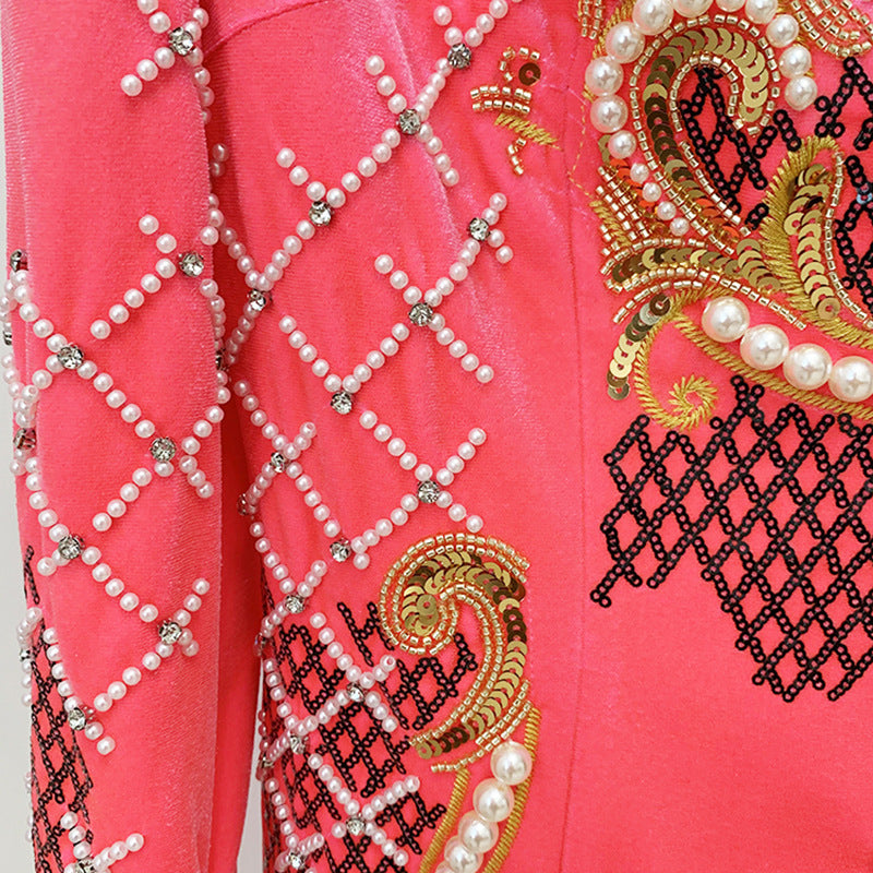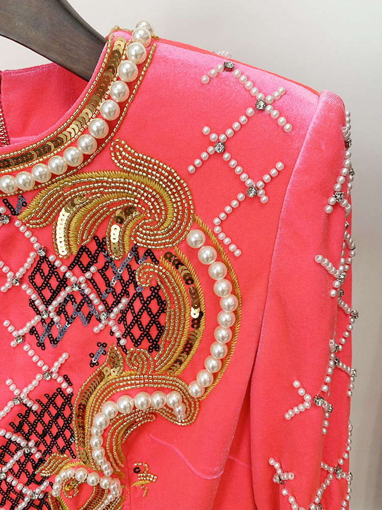 Autumn Winter Heavy Industry Embroidery Sequined Diamonds Bead Long Sleeve Gold Velvet Sheath Dress