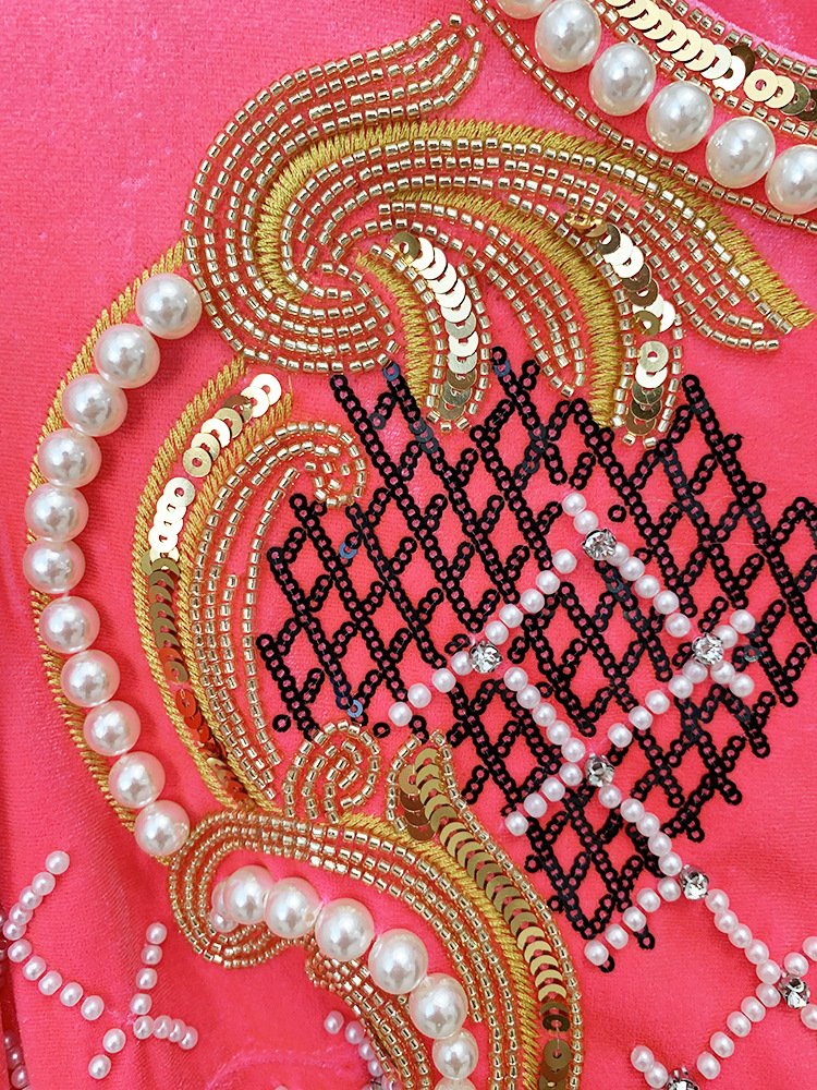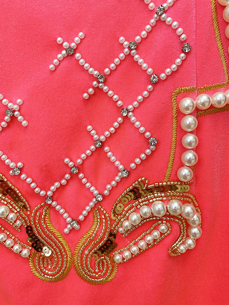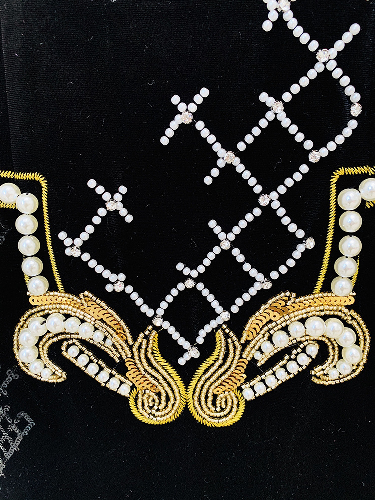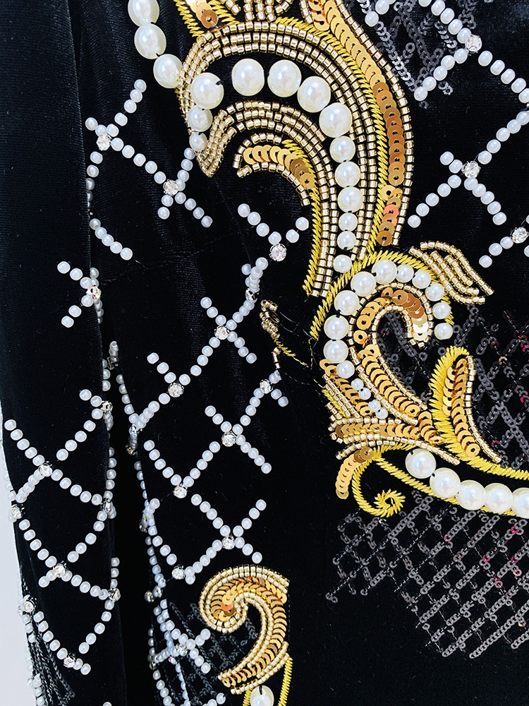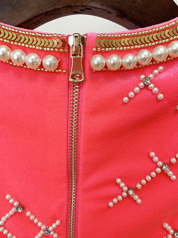 Autumn Winter Heavy Industry Embroidery Sequined Diamonds Bead Long Sleeve Gold Velvet Sheath Dress