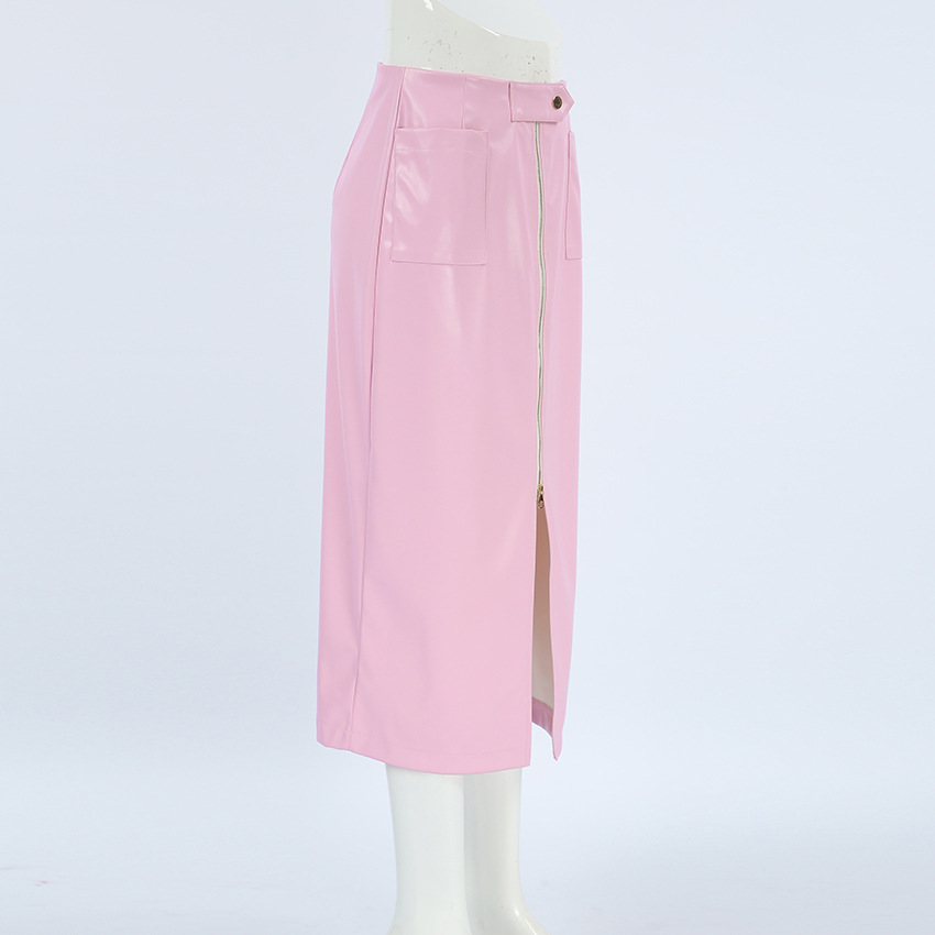 Autumn Winter Retro Matte Casual Leather Split Skirt Midi Skirt