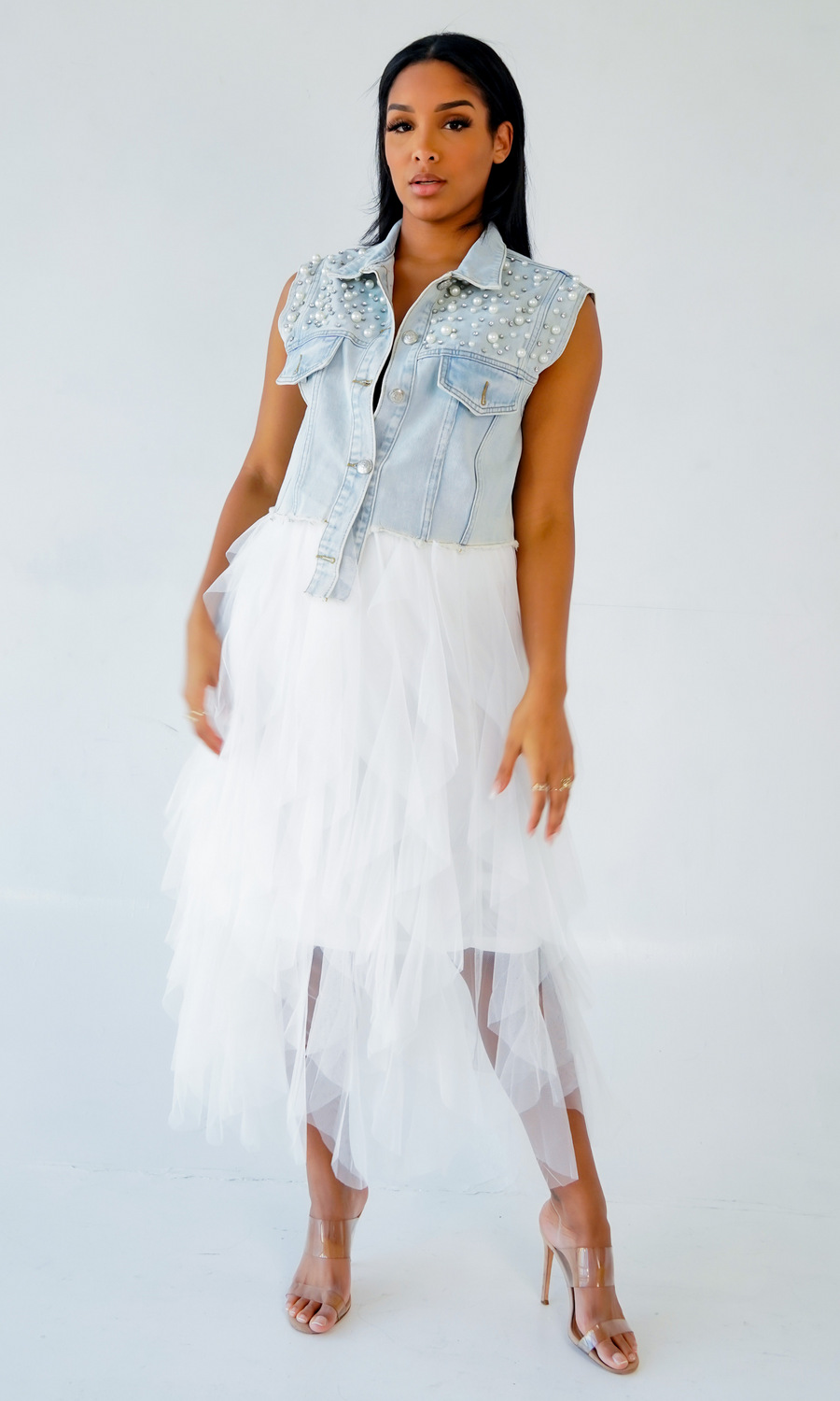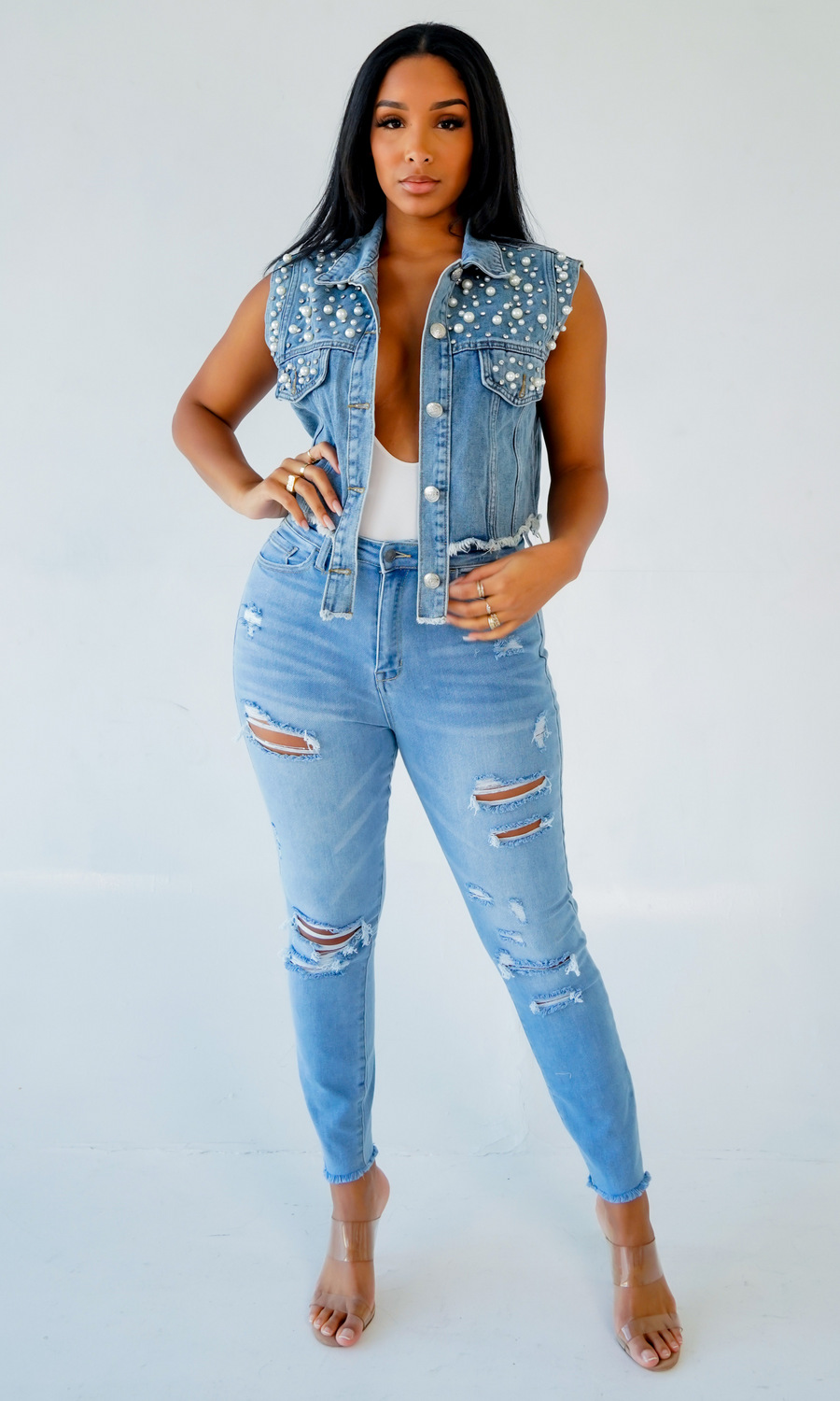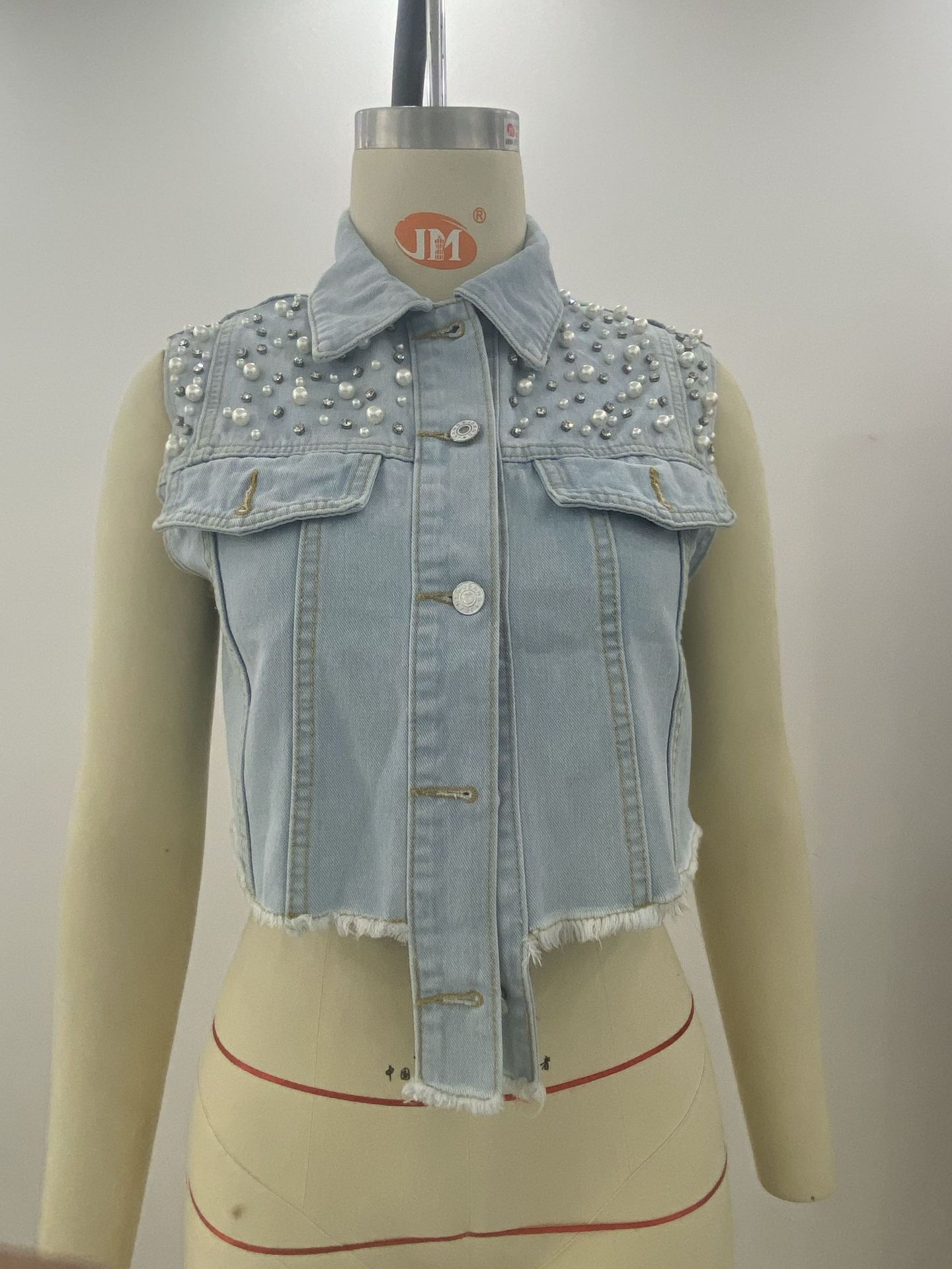 Beads Rhinestones Denim Vest Coat Denim Shawl Women