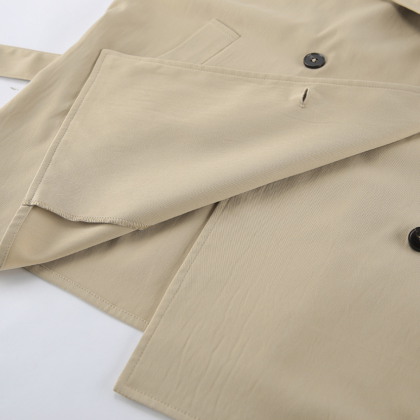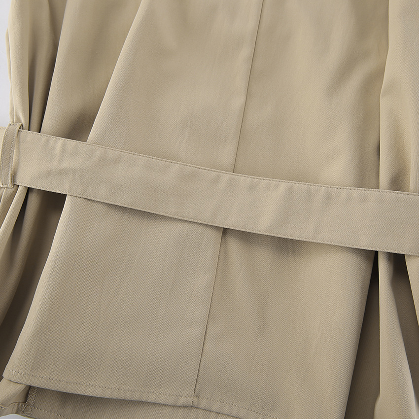 British Long Sleeve Collared Lace up Waist Controlled Slimming High Sense Fall Mid Length Trench Coat Women