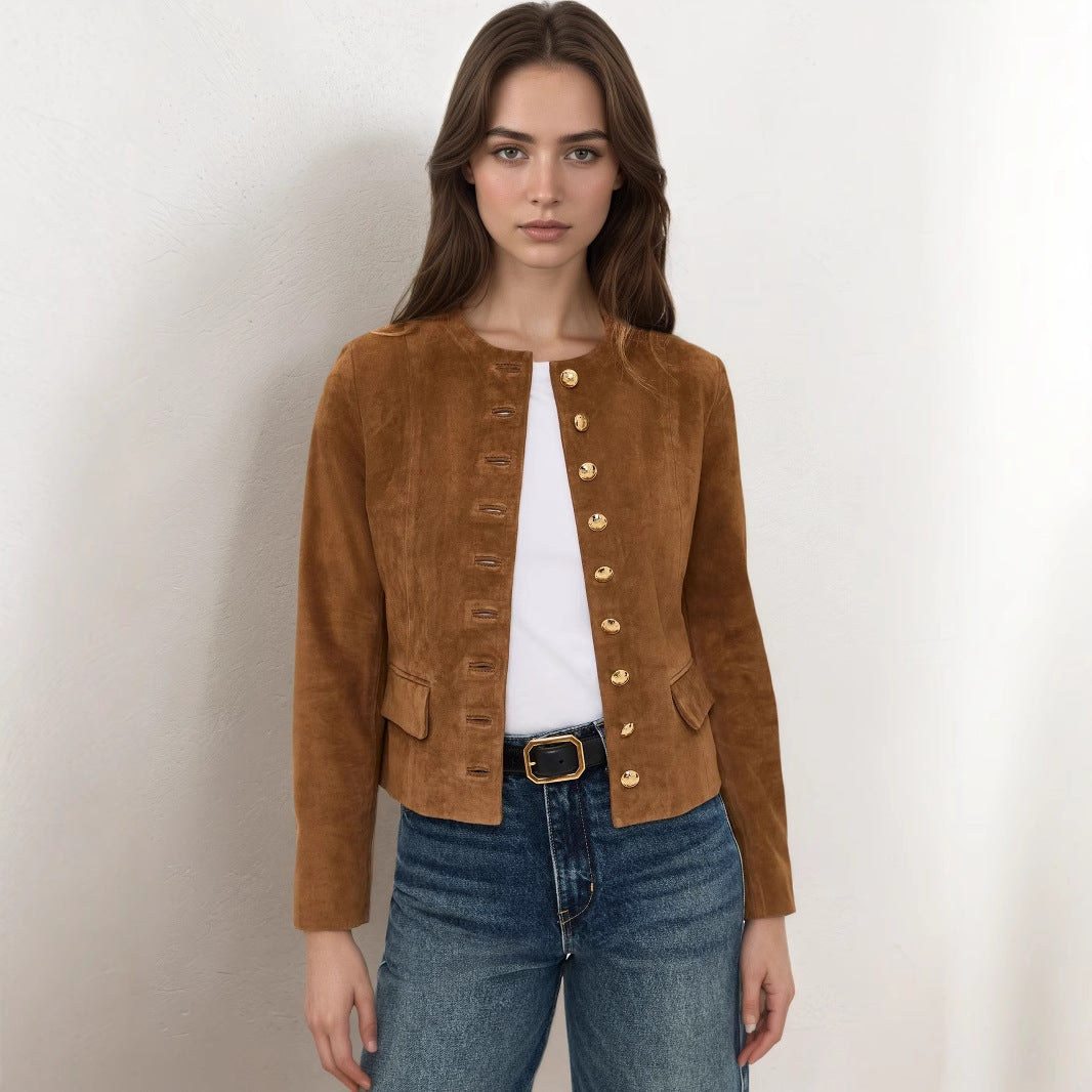 Classic Metal Single Breasted Short All Match Suede Air Layer Jacket Short Coat Autumn