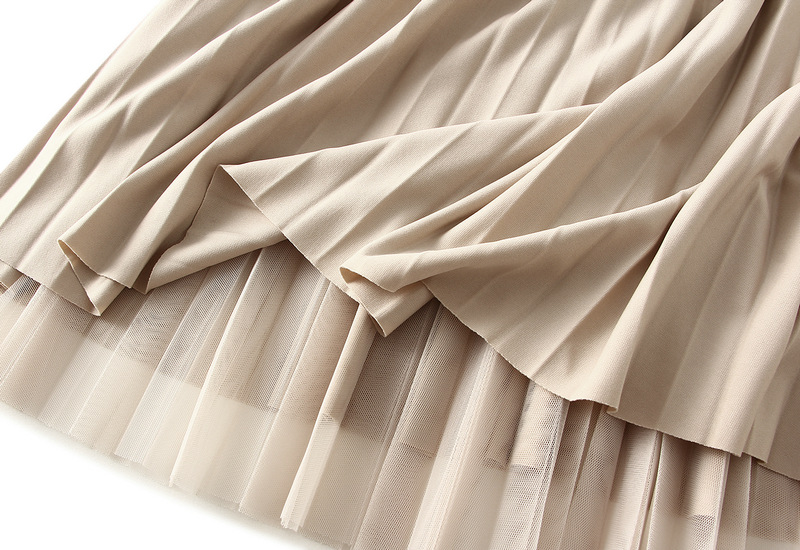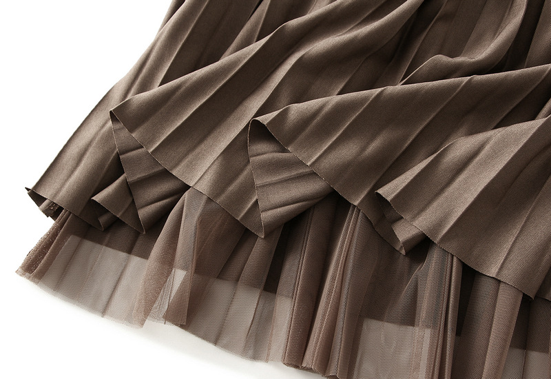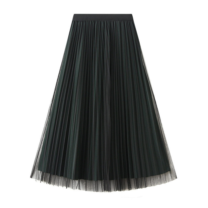 Double Sided Pleated Skirt Gauze Skirt Autumn Winter A Line Skirt Belly Covering Skirt
