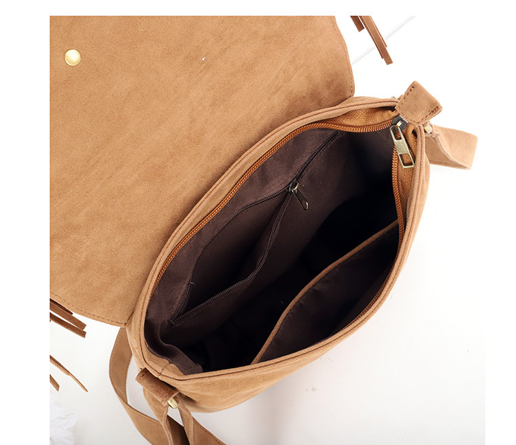 Double Sided Suede Handmade Large Capacity Tassel Bag Women Retro Khaki Ethnic Messenger Bag
