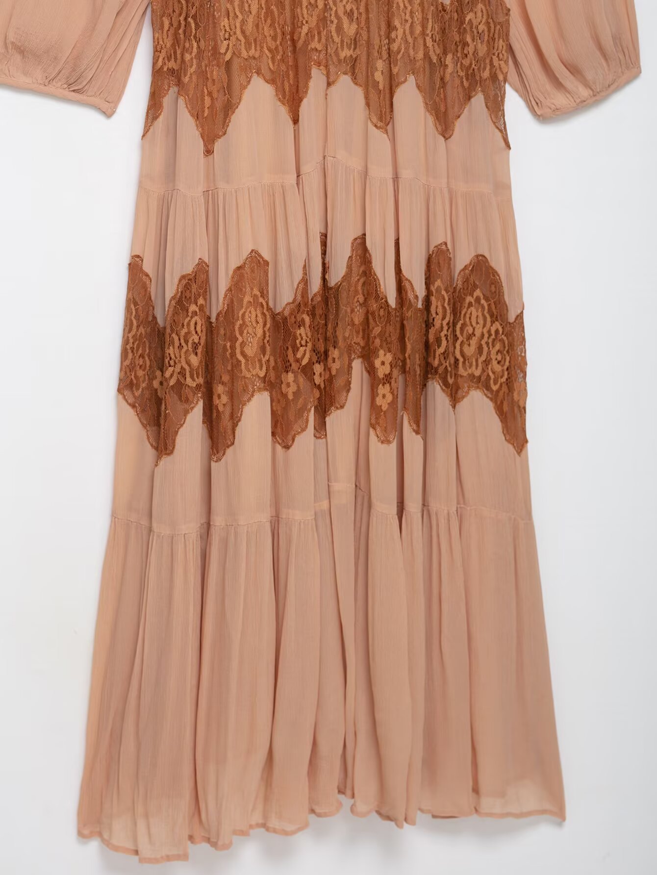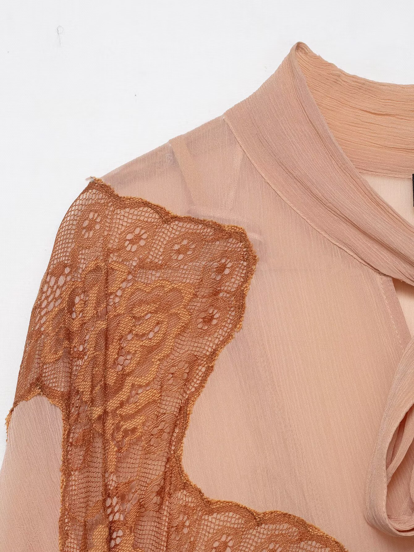 Dress Autumn Graceful Bow Stitching Lace Dress