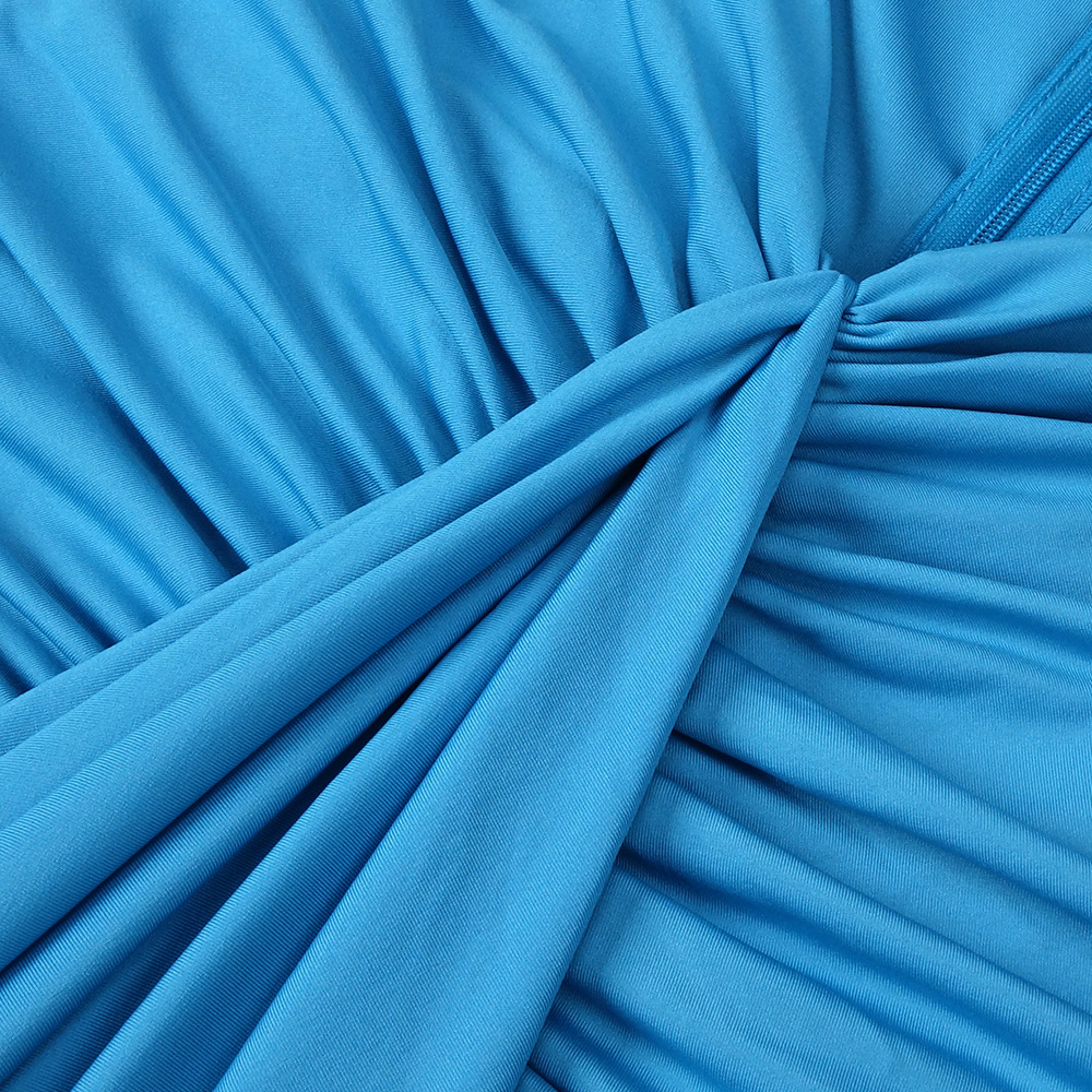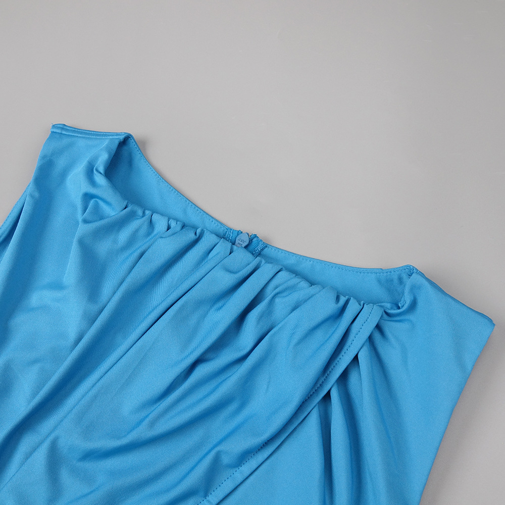 Elegant Stitching Sexy Dress Blue Hollow Out Cutout High Waist Slim Fit Dress Women
