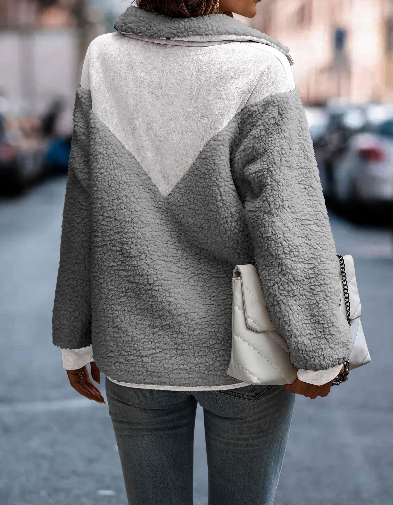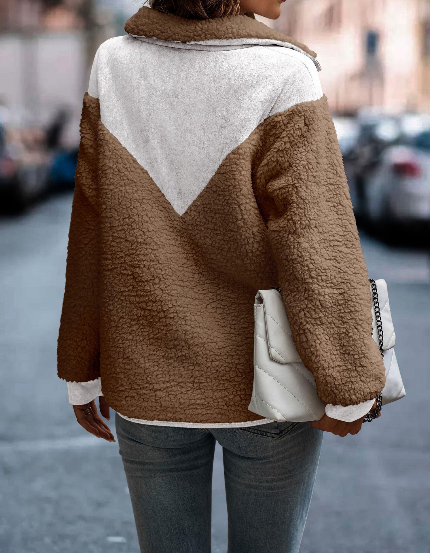 Fall Winter Patchwork Pocket Button Long Sleeve Women Coat