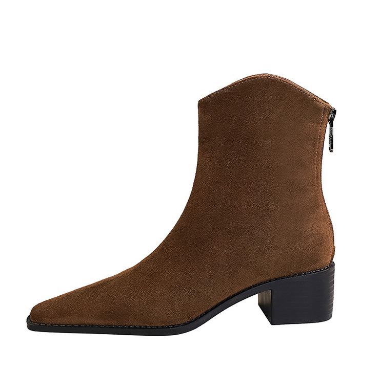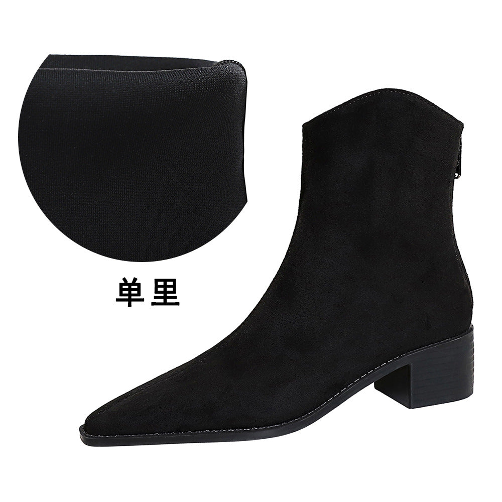 Fashionable Simple Winter All Matching Chunky Heel Mid Heel Pointed Toe Suede Short Boots Short Women Boots