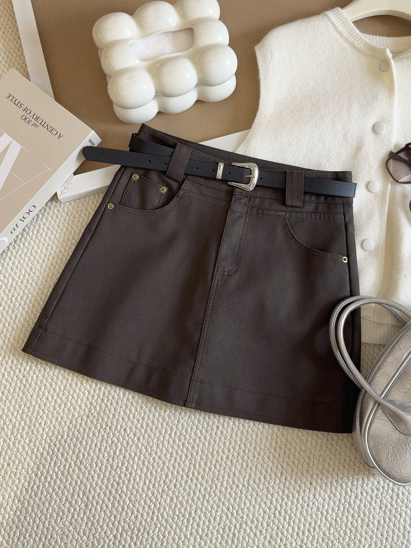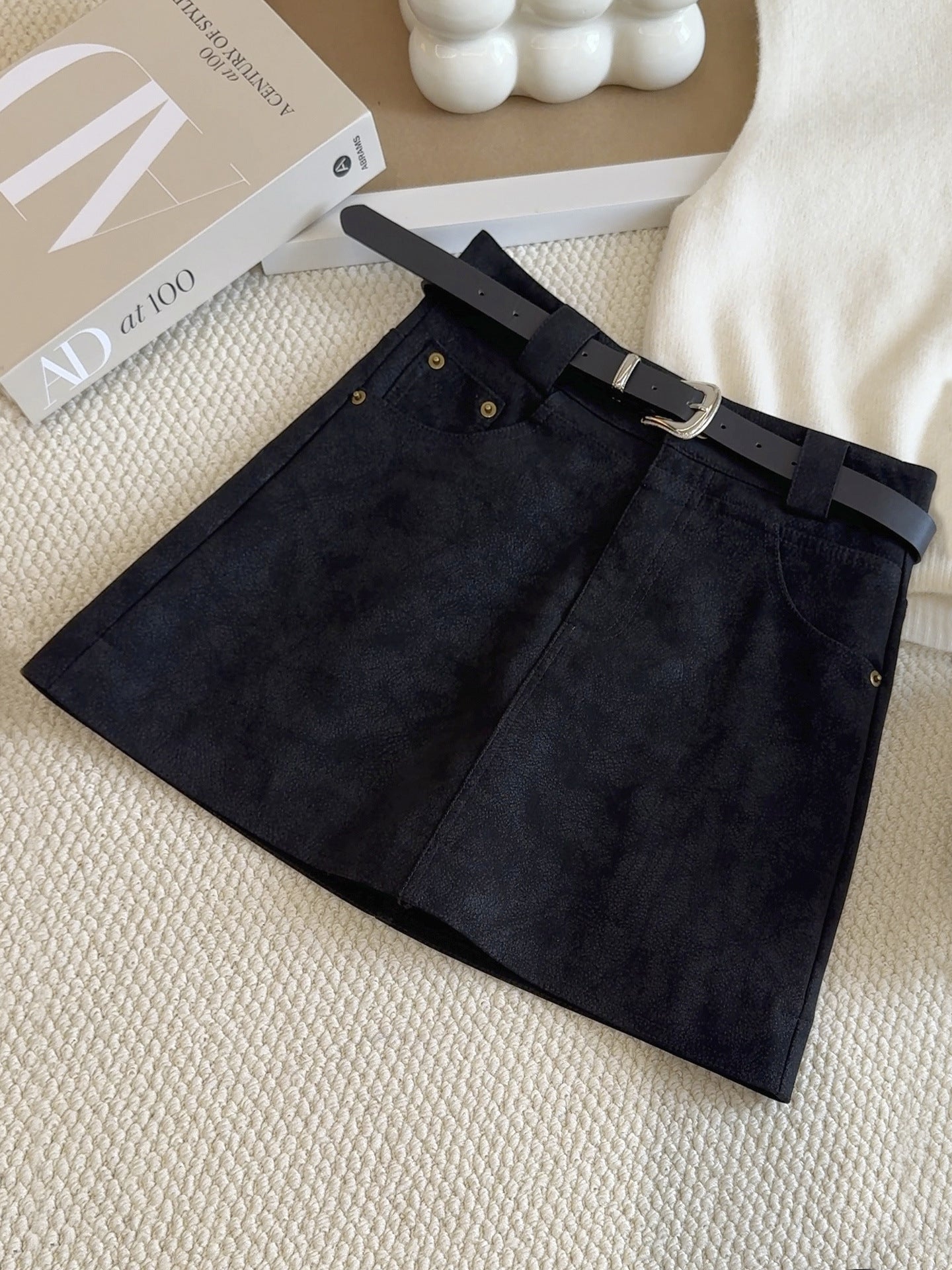Faux Leather Skirt Women Autumn High Waist Slimming Anti Emptied Hip Bag A line Skirt With a belt included