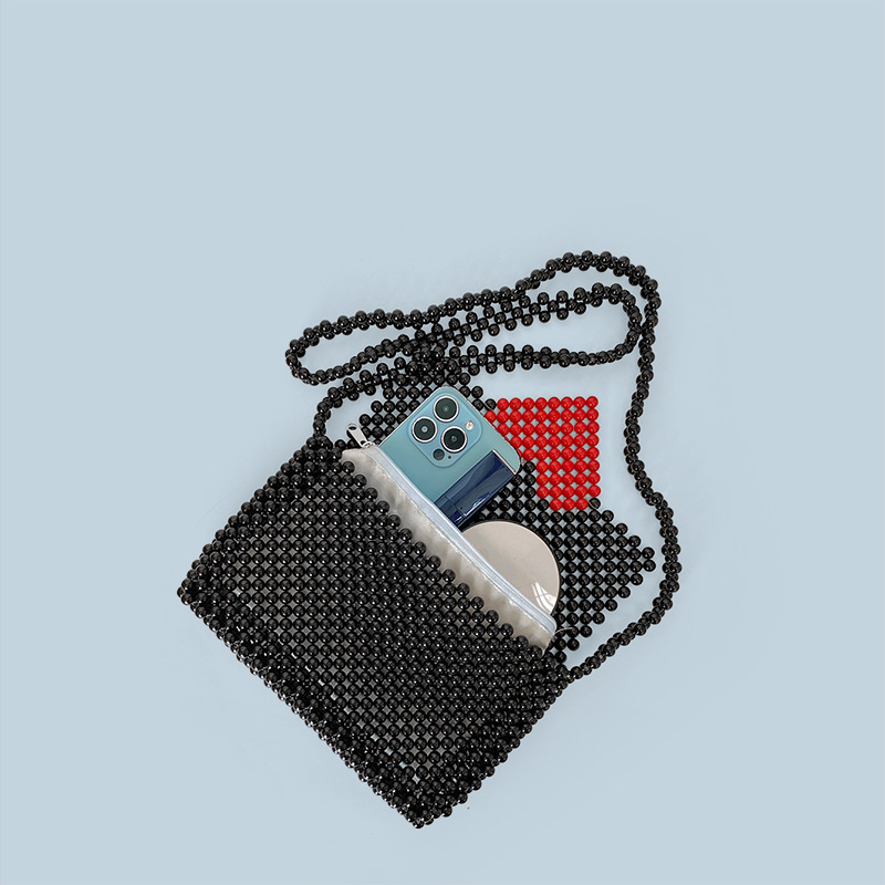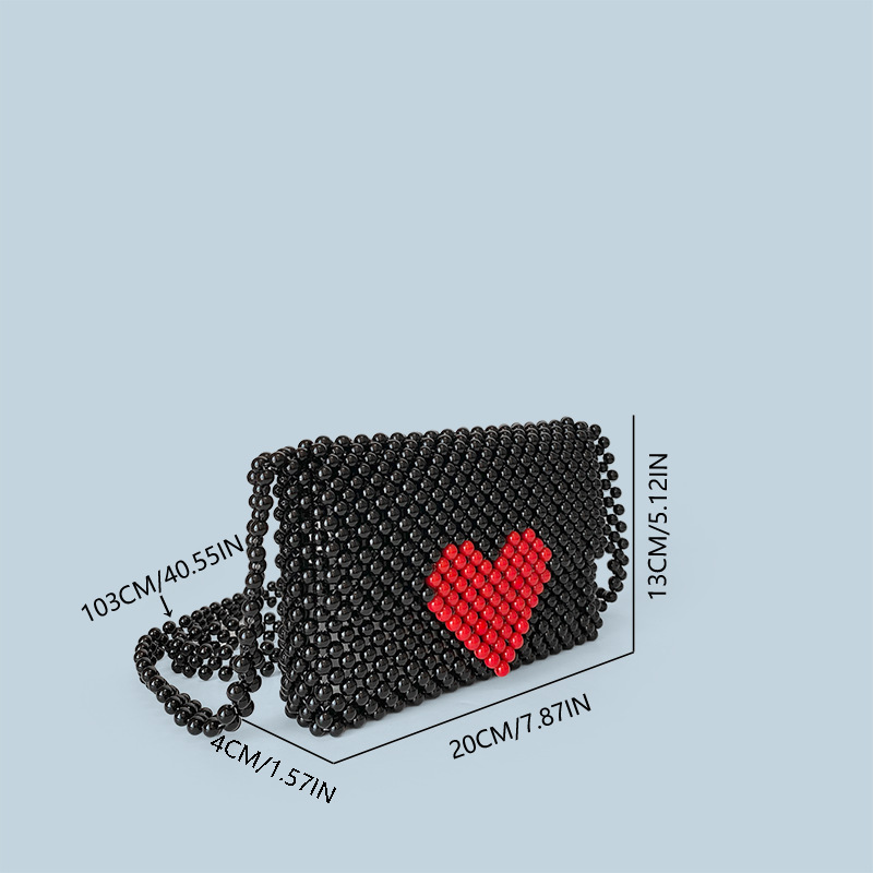 Finished Hand Woven Beaded Bag Shoulder Messenger Bag Mobile Phone Bag Red Love Western Women Bag