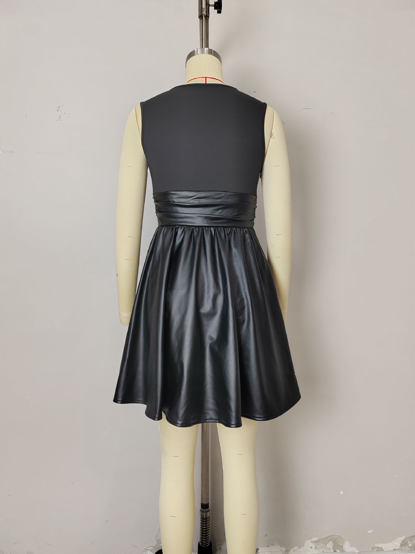 Graceful Fashionable Sleeveless round Collar Design Leather Stitching Dress