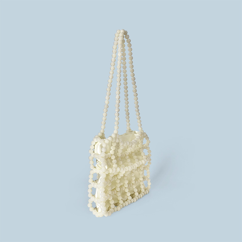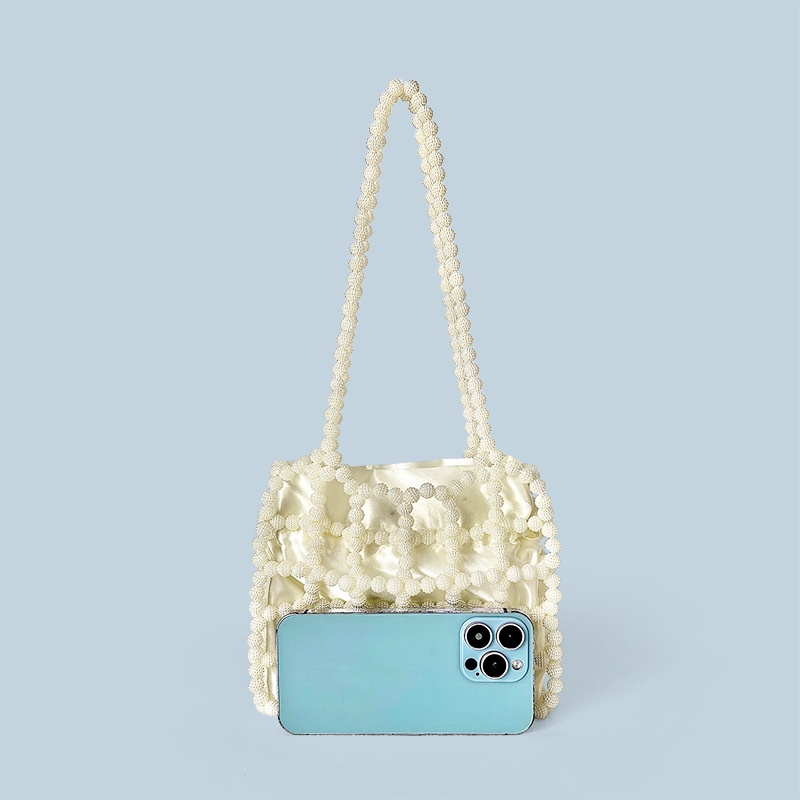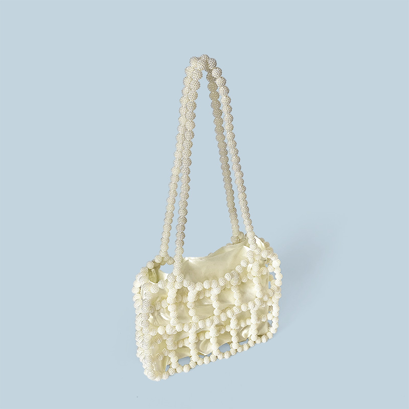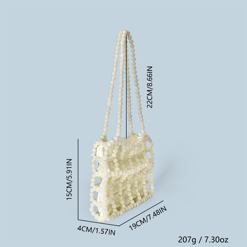 Handmade Beaded Bag All Match Shoulder Crossbody Portable Hollow Out Cutout Bag White Beads Bag
