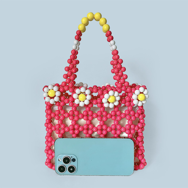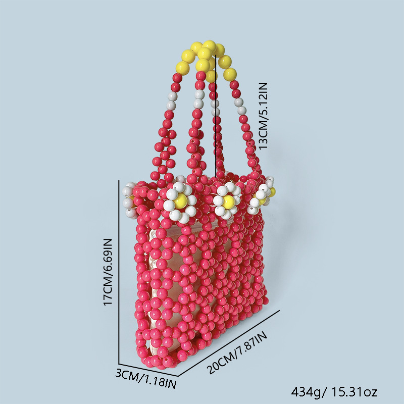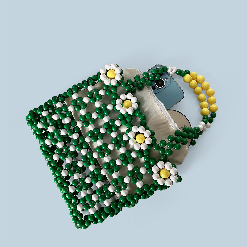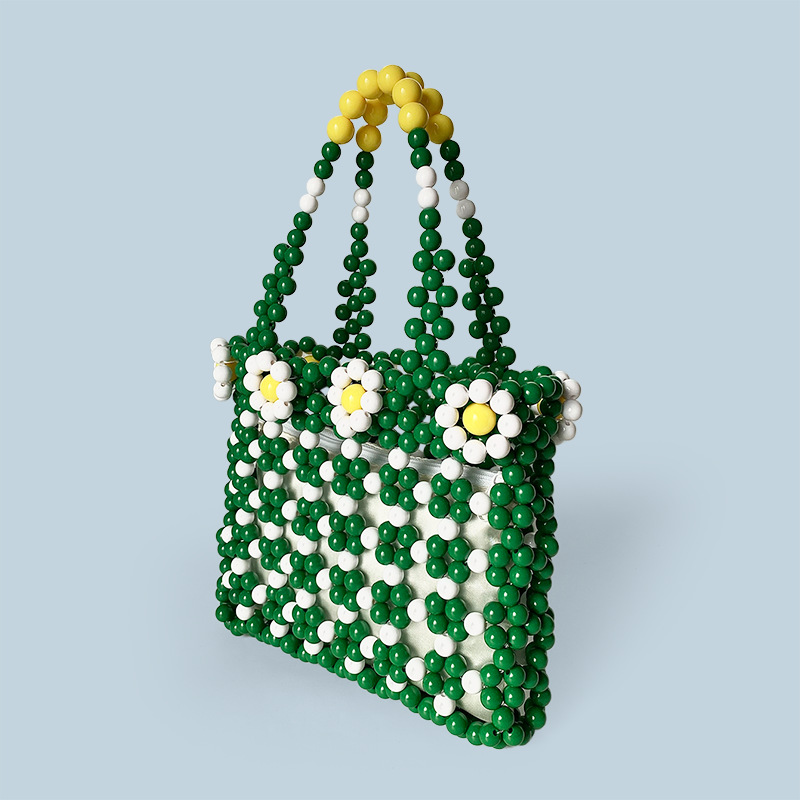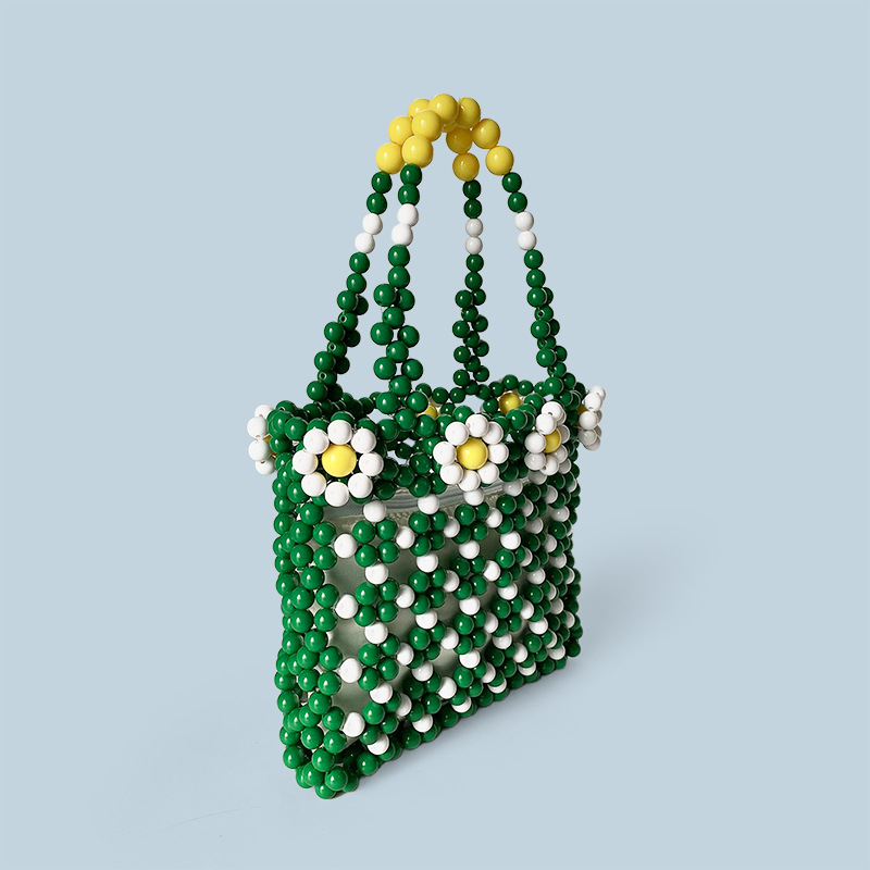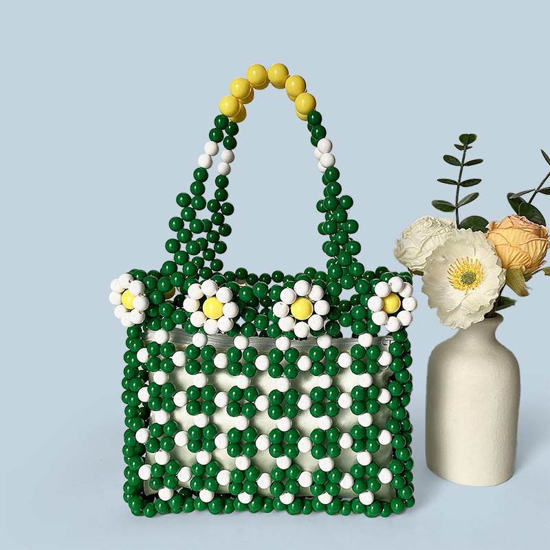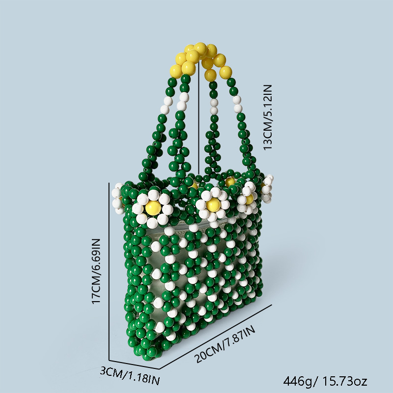 Handmade Beaded Bag Children's Fun Green Pearl Bag Cute Sweet Floral Handbag Hand Bag