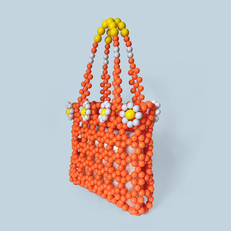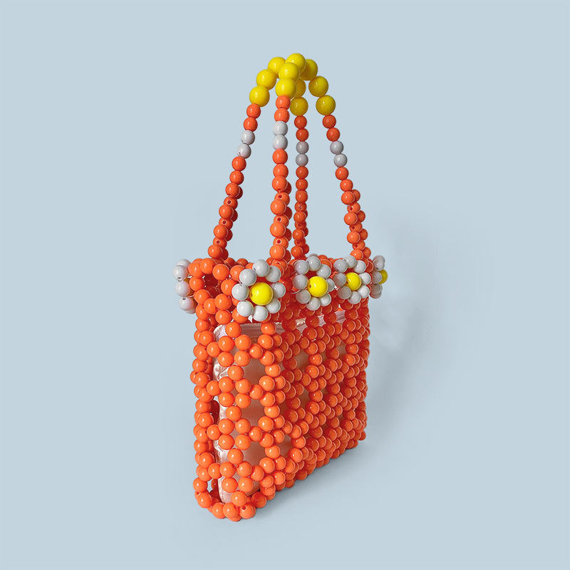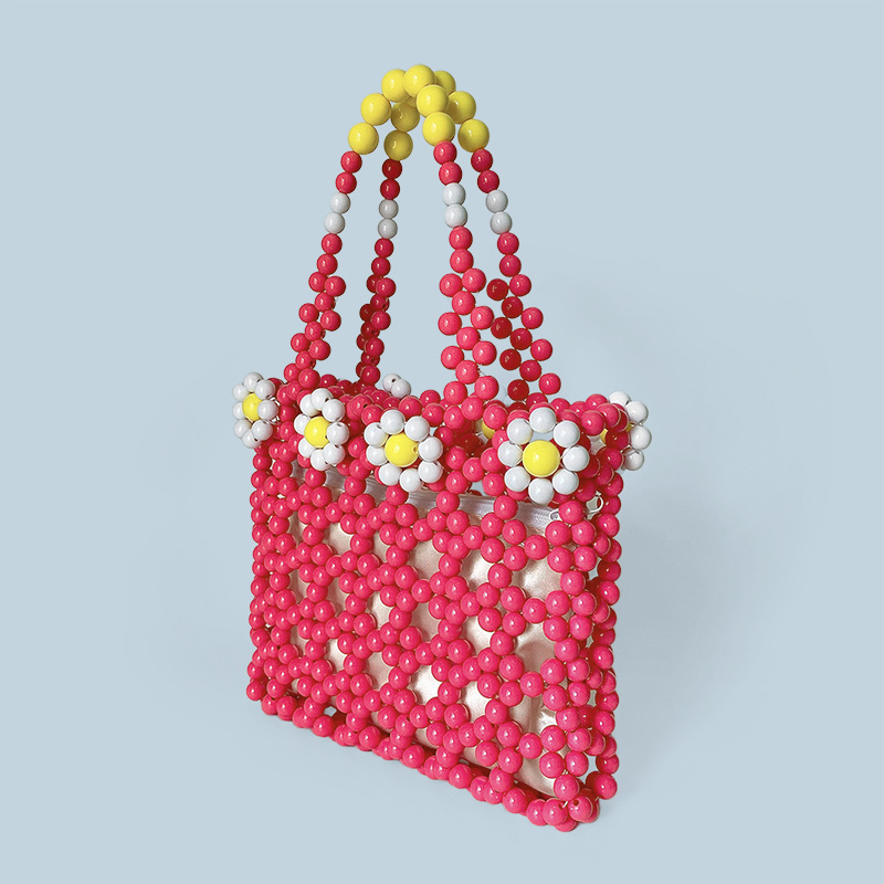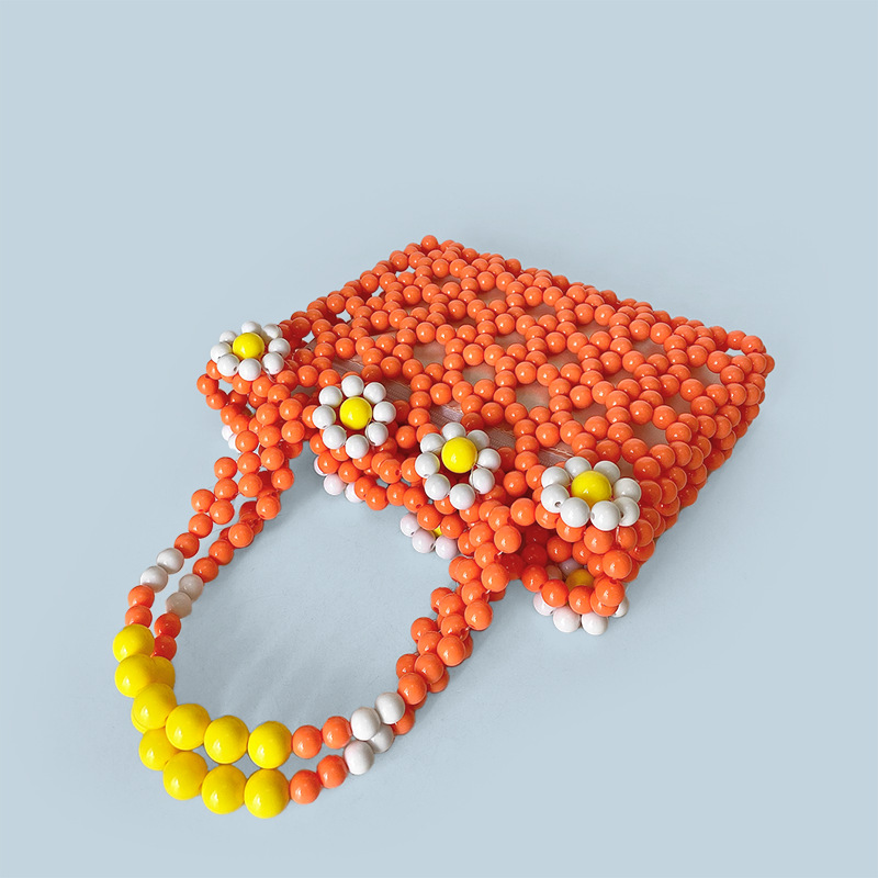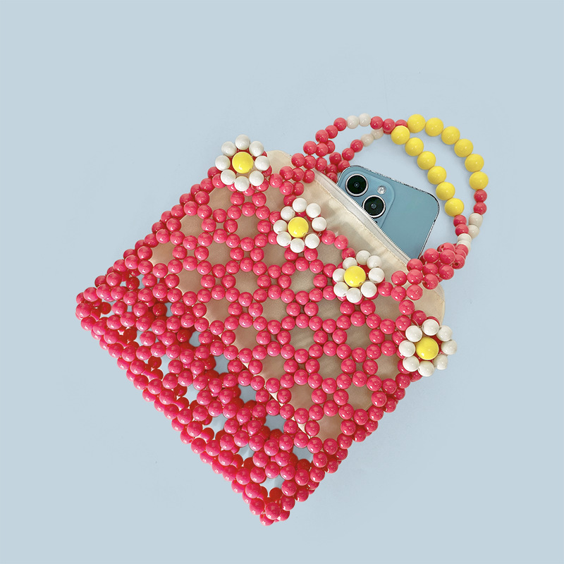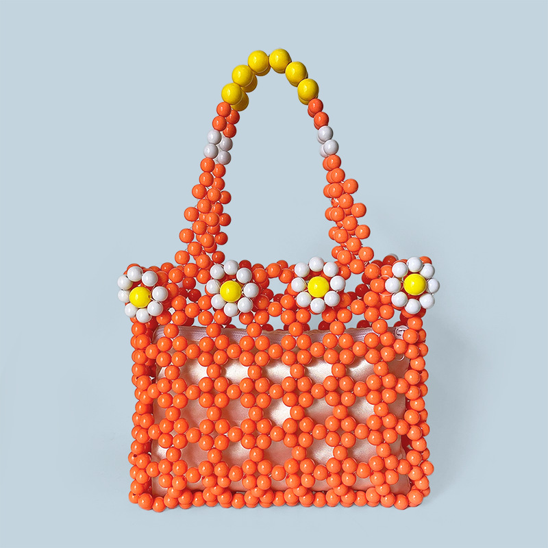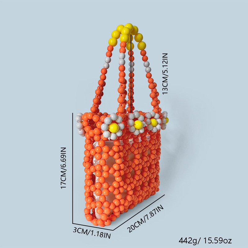Handmade Beaded Bag Children's Fun Green Pearl Bag Cute Sweet Floral Handbag Hand Bag