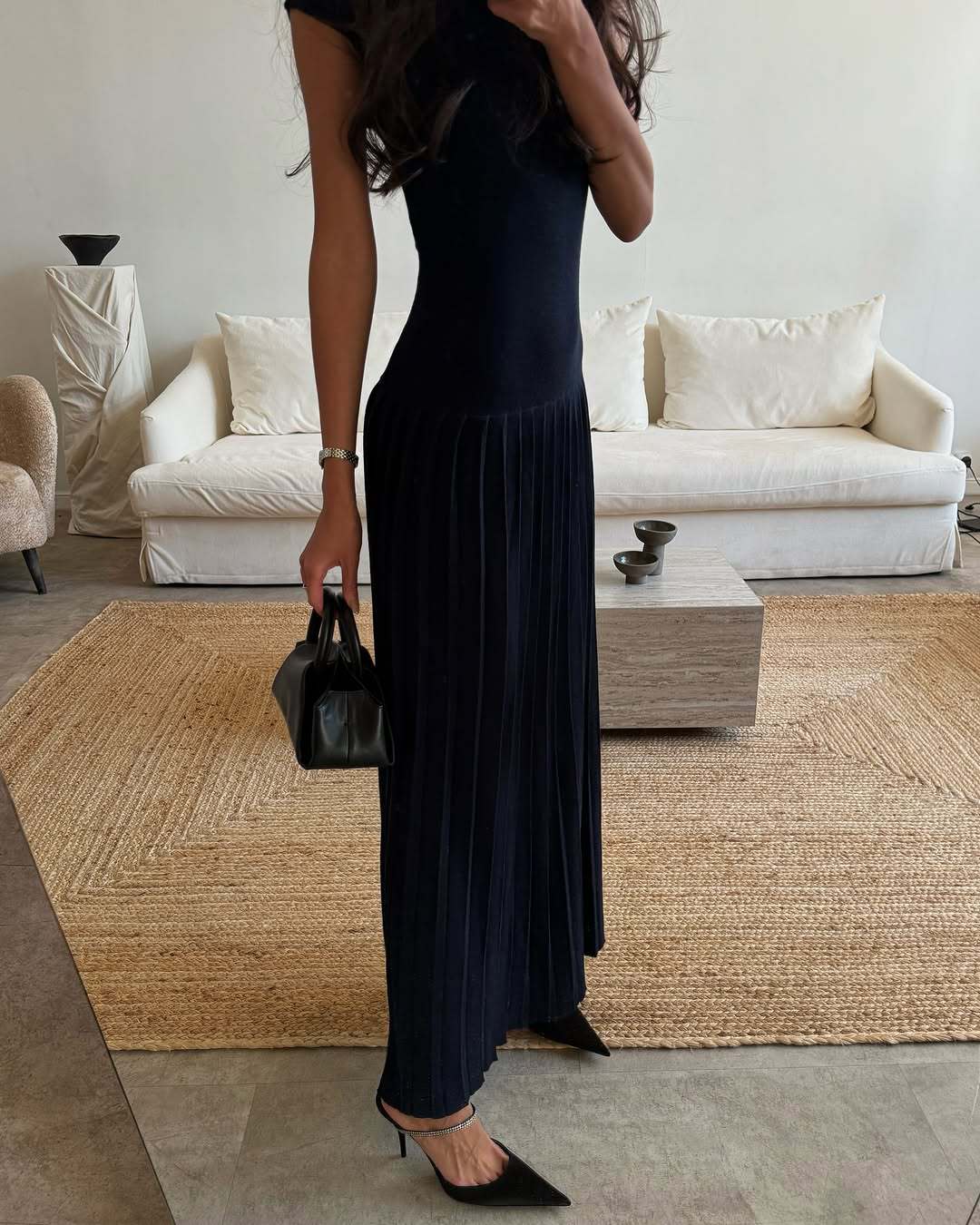 Knitted Dress Casual Waist Tight High Neck Ribbing Pleated Slim Knitted Dress Women