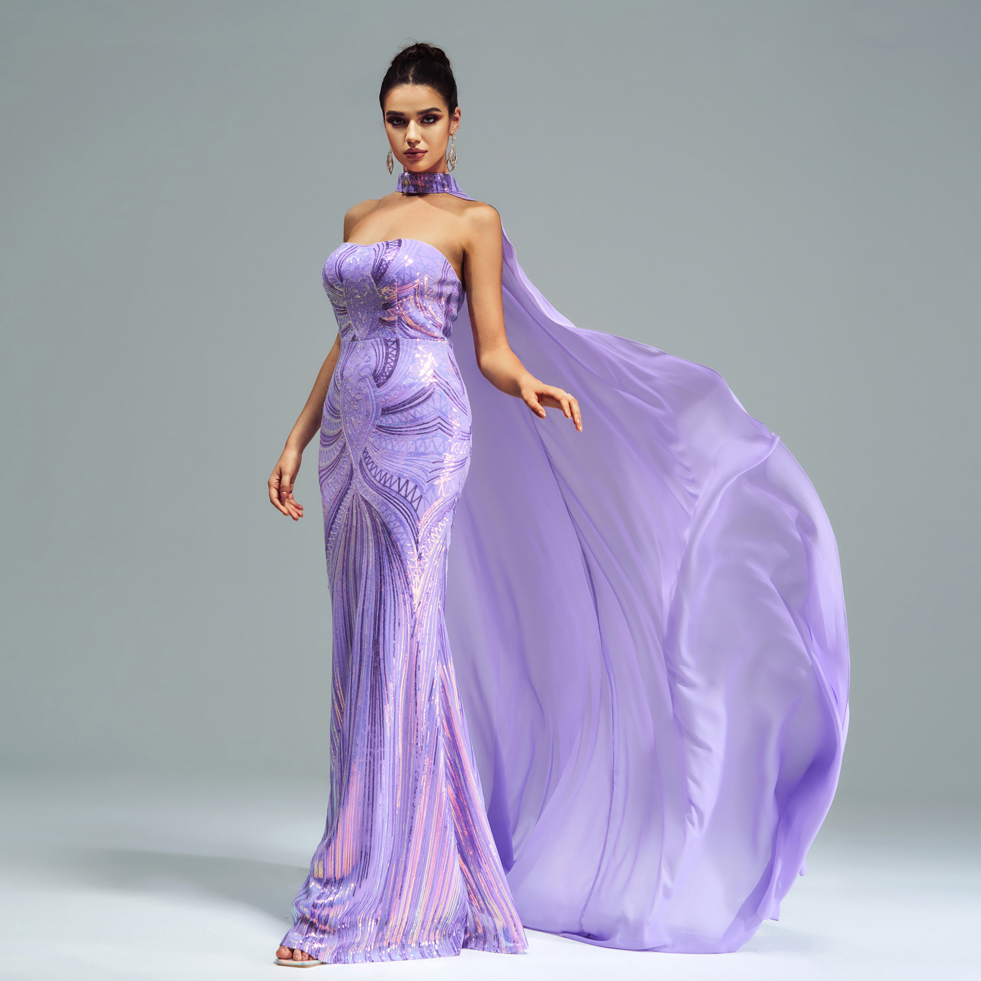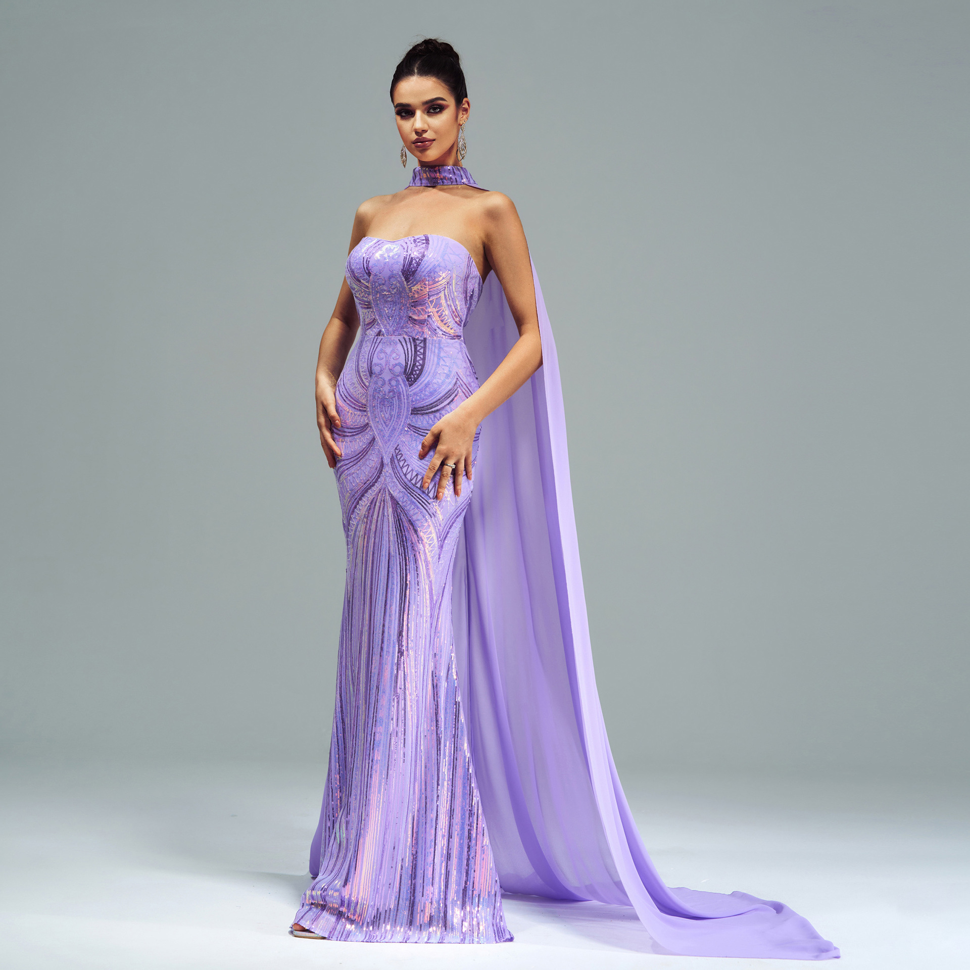 Long Sleeve round Neck Long Sequined Cocktail Cape Fishtail Evening Dress Bridesmaid Dress Dress Women