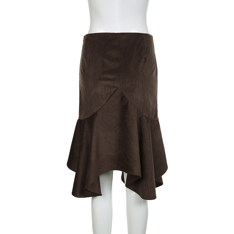 Maillard Women Autumn Winter Retro Brown Mid Length with Irregular Asymmetric Design