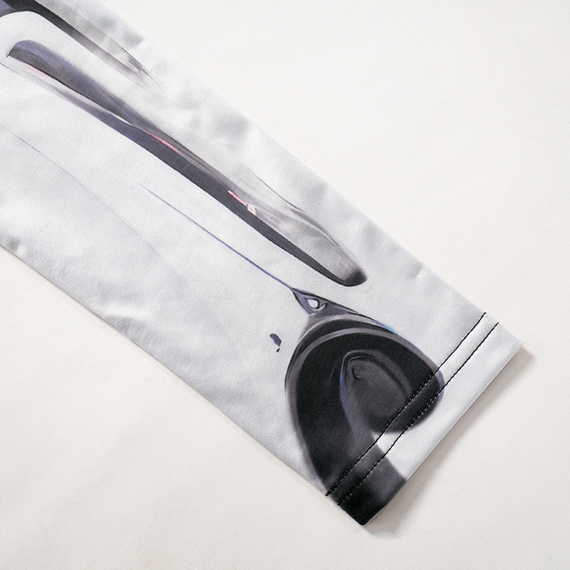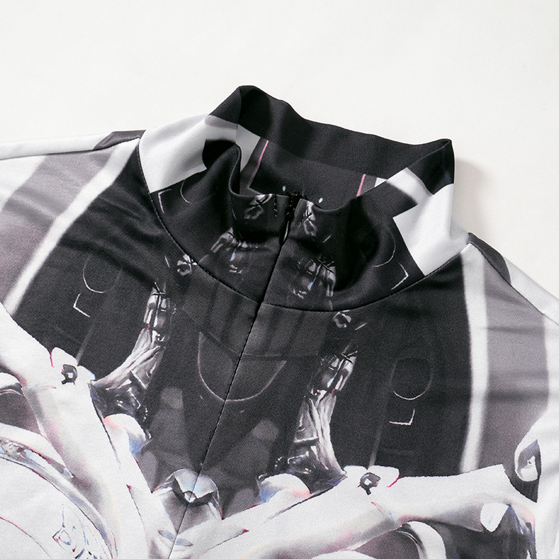 Mechanical Printing Half Turtleneck Long Sleeve One Piece Trousers High Elastic Tights Women Clothing