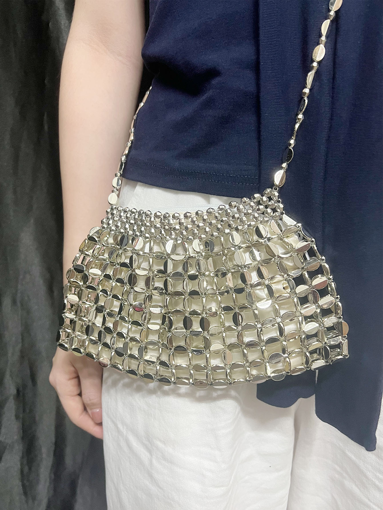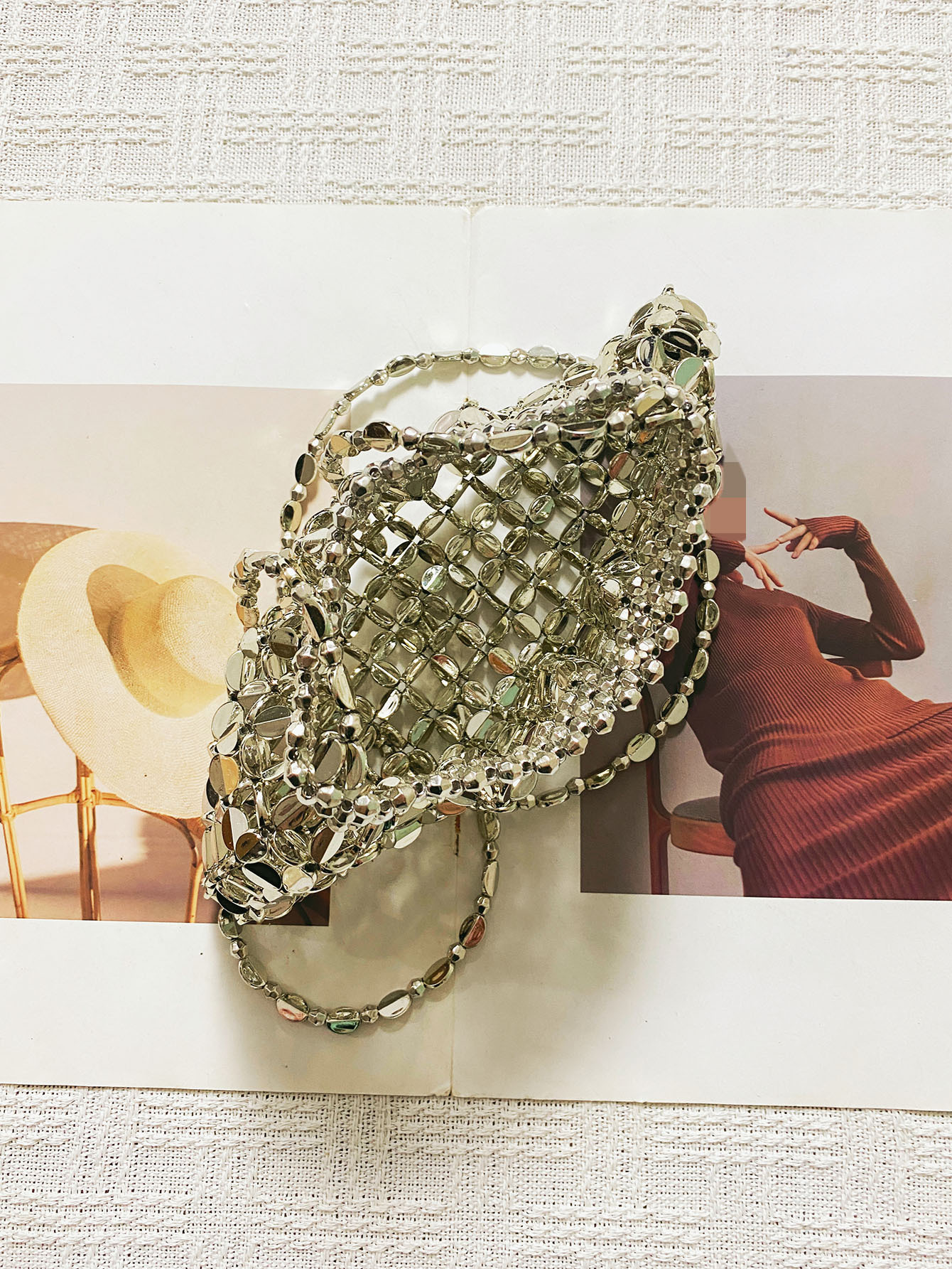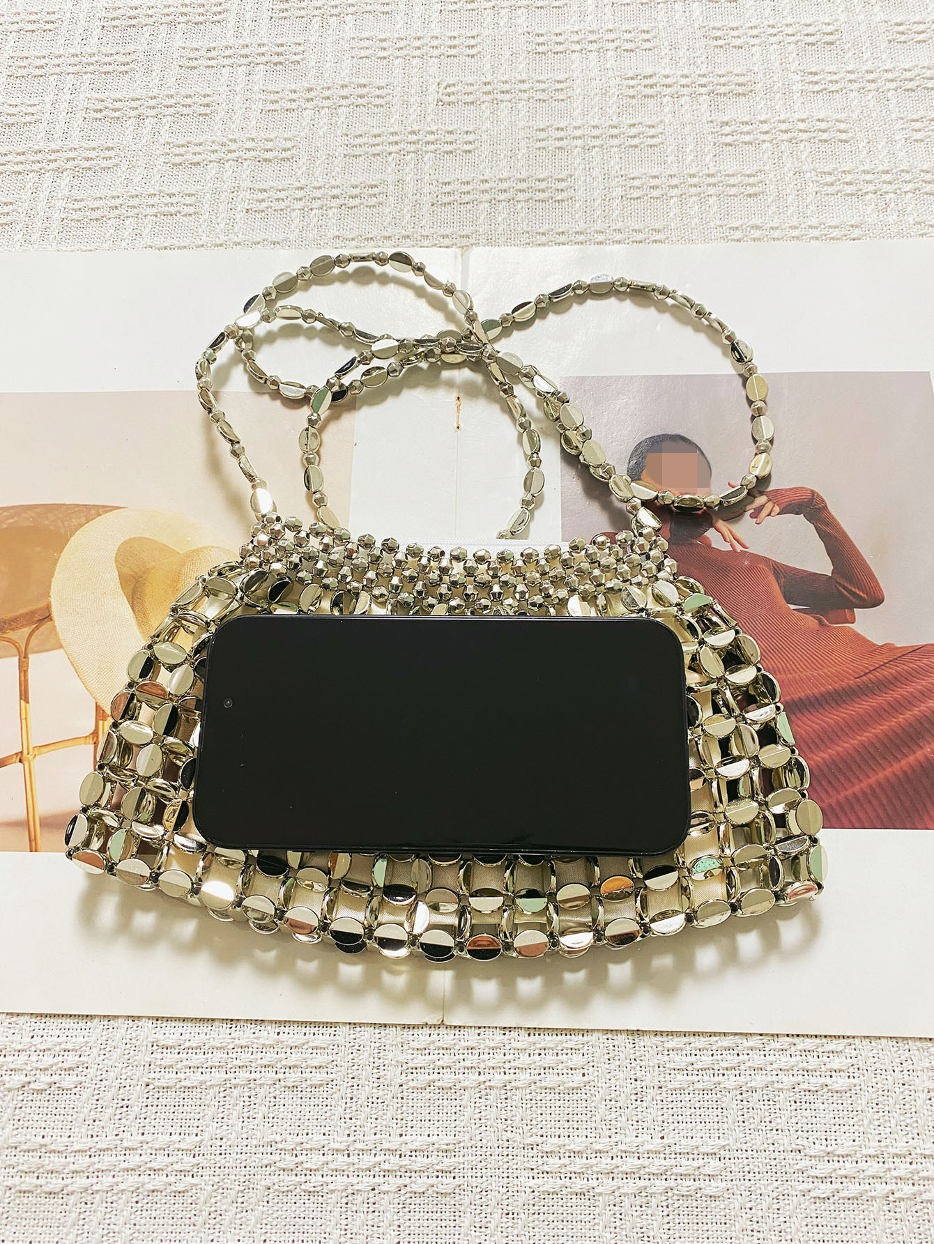 Metal Beaded Women Bag Hollowed out Hand Woven Exposure Bag Bags Woven Dumplings