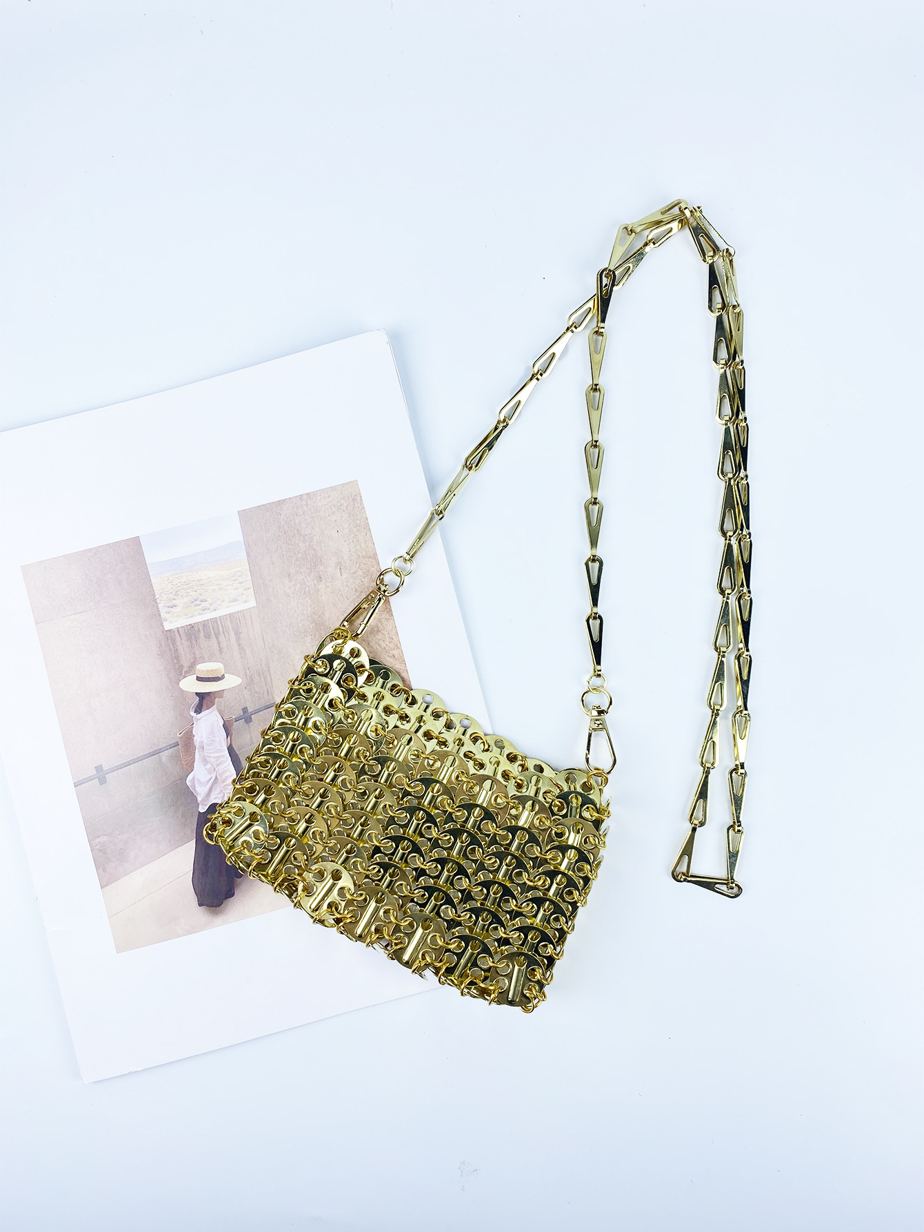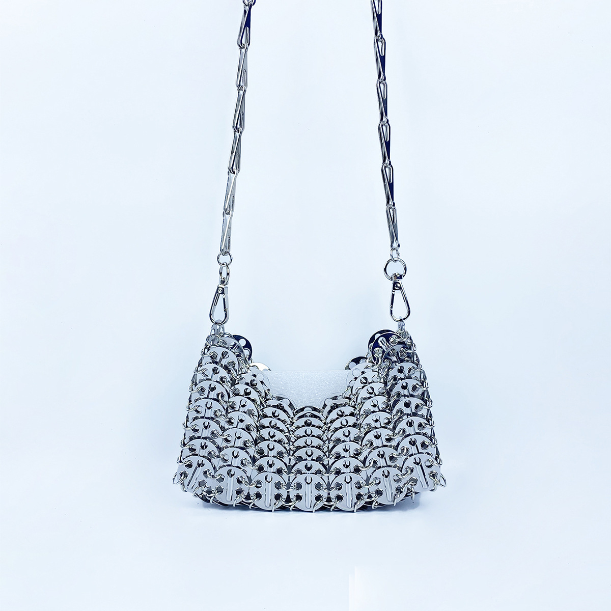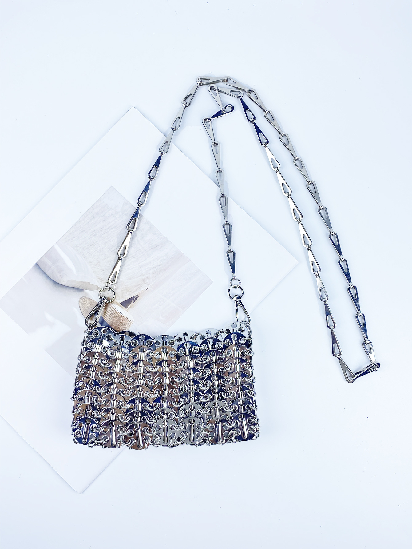 Metal Sequ Chain Hand Woven Bag Western Mobile Phone Lipstick Crossbody Bag Women