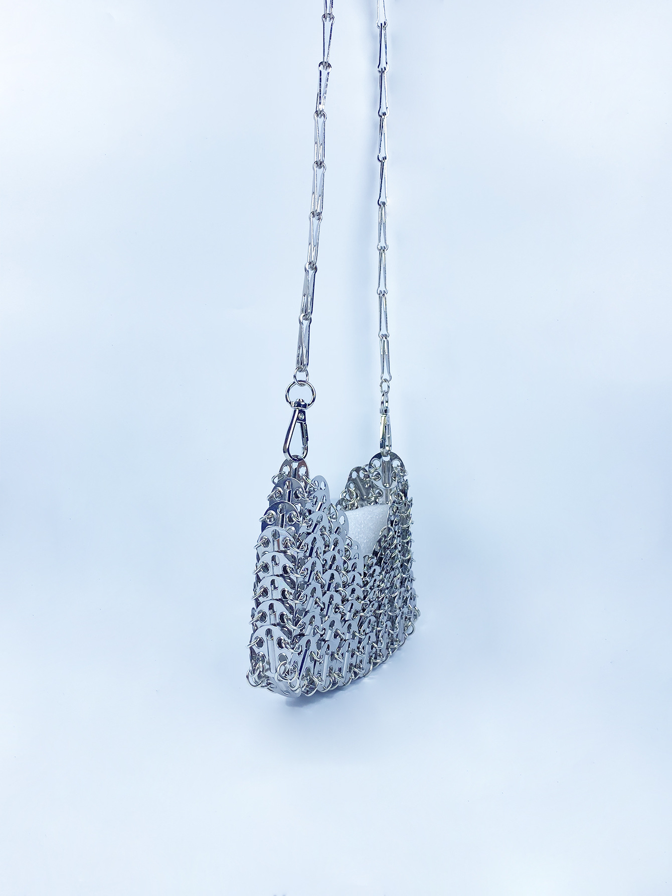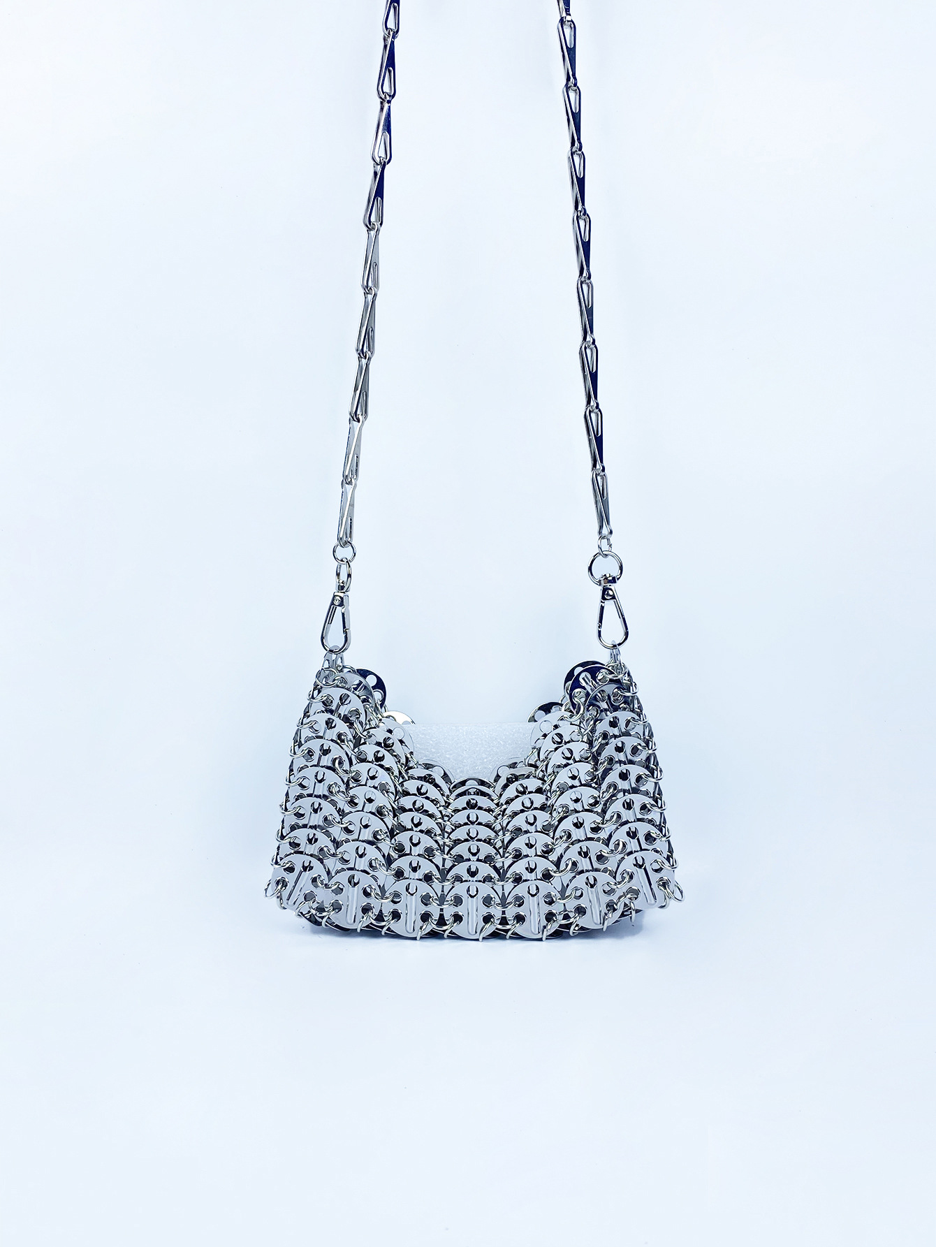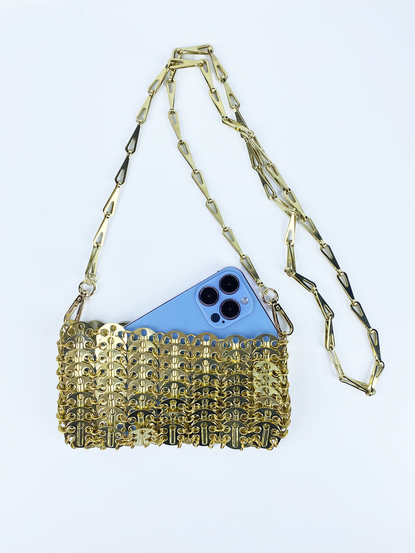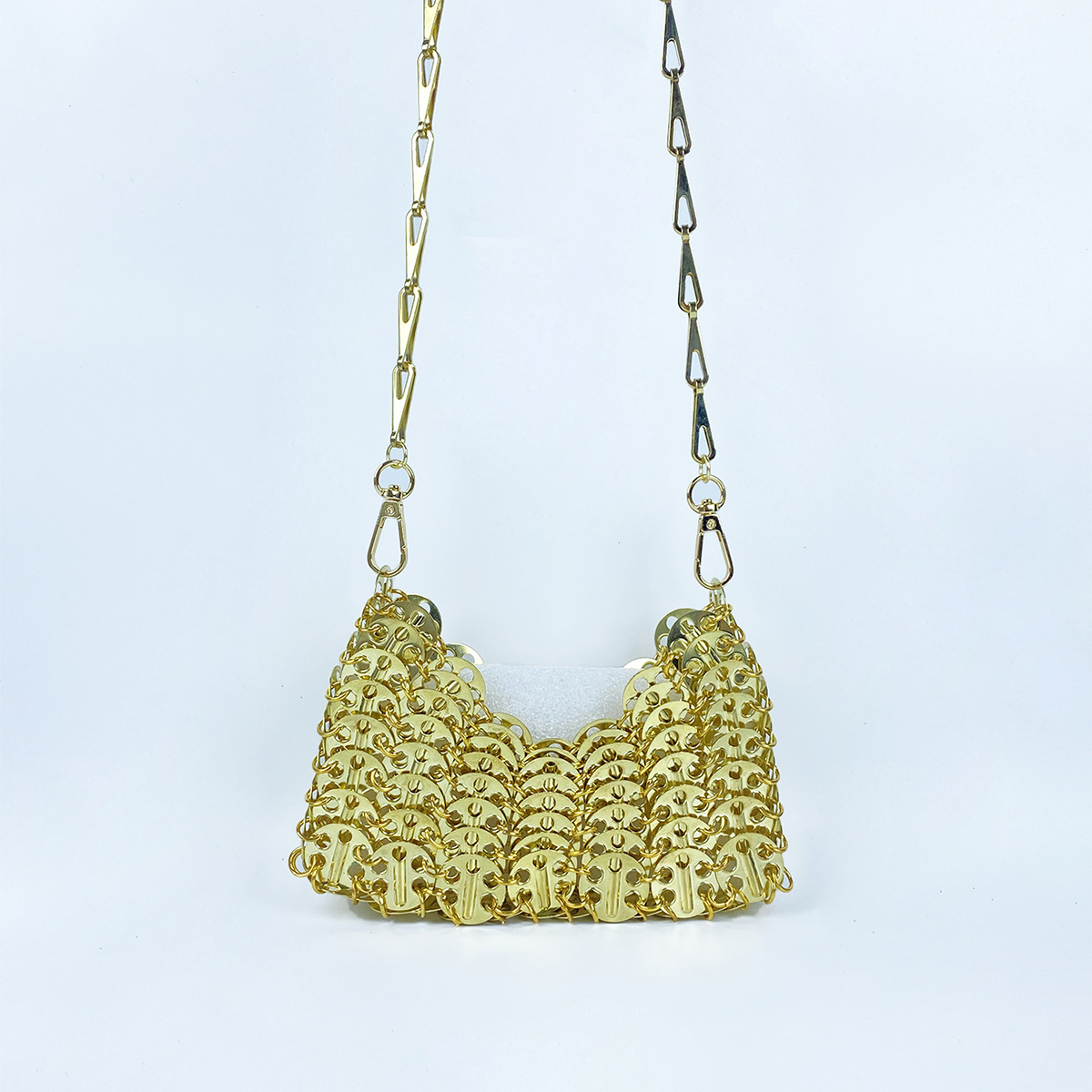 Metal Sequ Chain Hand Woven Bag Western Mobile Phone Lipstick Crossbody Bag Women