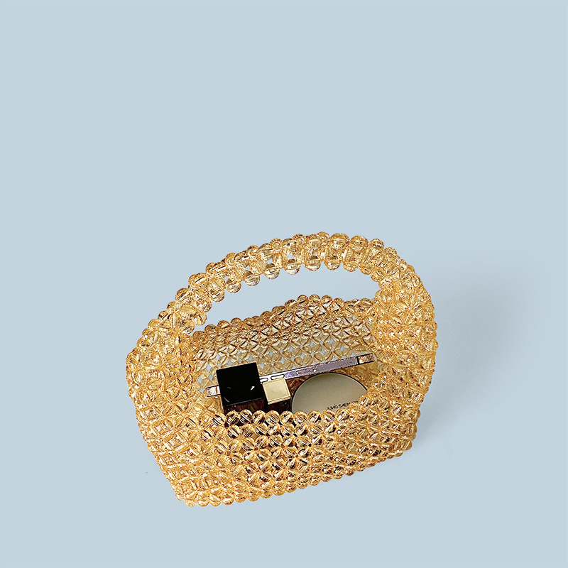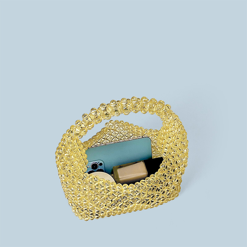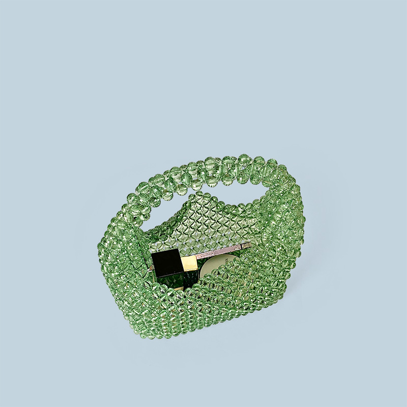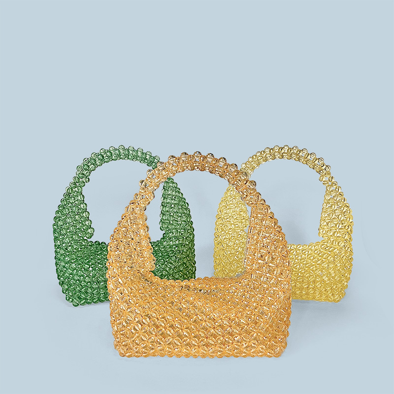 Multi Color Hand Woven Beads Acrylic Beads Tote Boston Pillow Cocktail Underarm