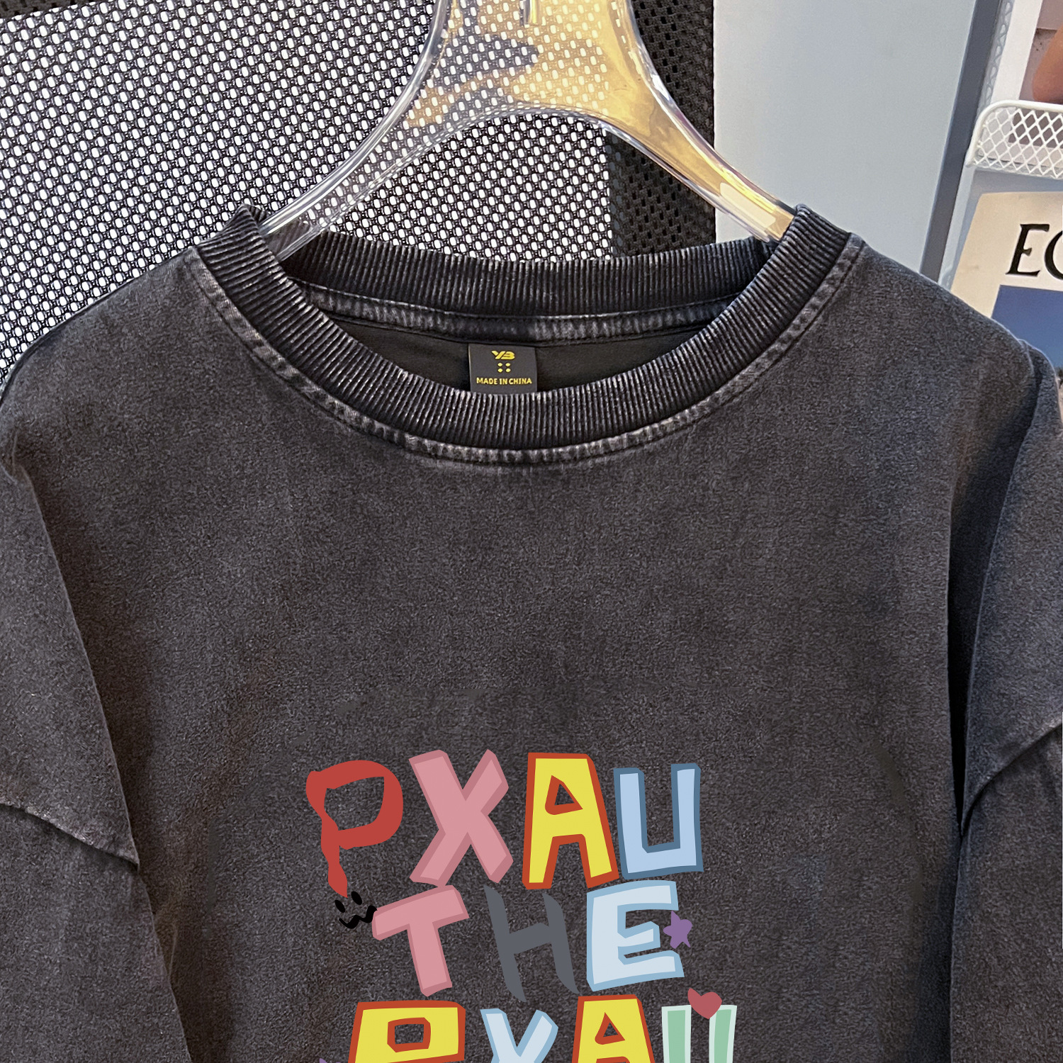 Niche Washed Worn Retro Crew Neck Loose Contrast Color Letters Printing plus Velvet Thickened Composite Sweater for Women