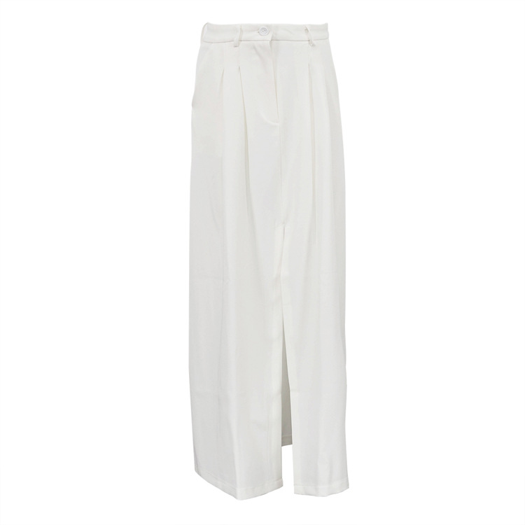 Office French High Waist Ruched Skirt Women Elegant High Sense Slit A line Skirt