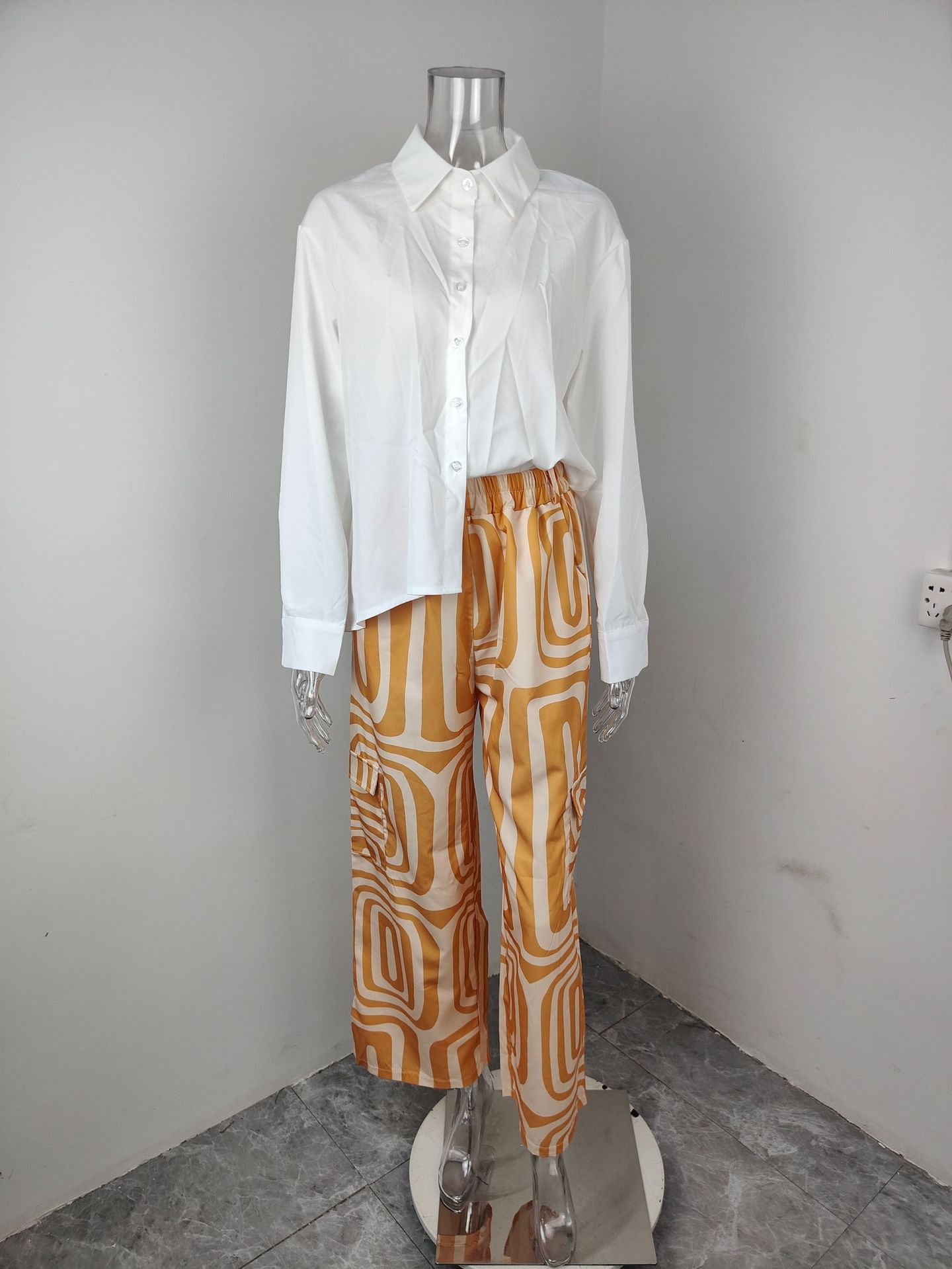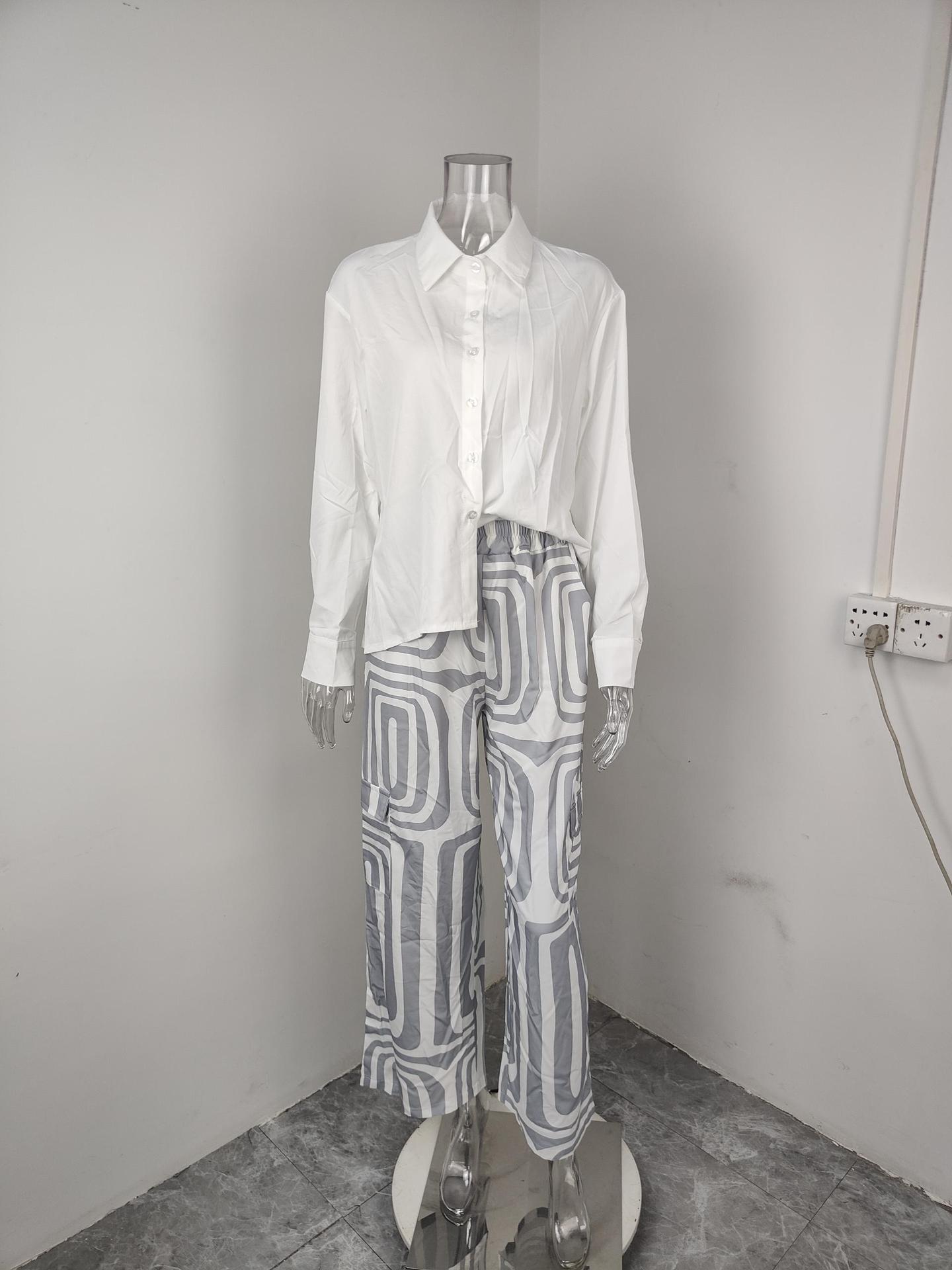 Office Shirt Loose Trousers Casual Women Spring Women Set (No Belt)