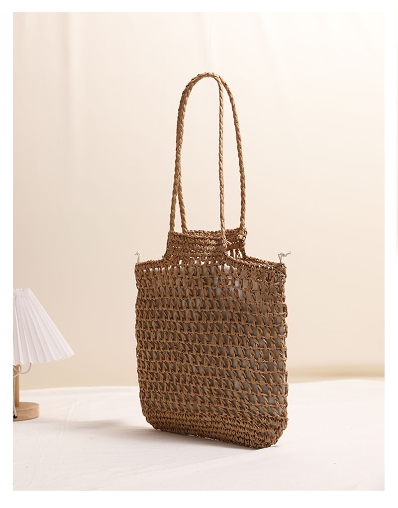 One Shoulder Hollow Out Cutout out Straw Bag Special Interest Design Straw Bag Woven Bag Vacation Beach Bag Women Bag