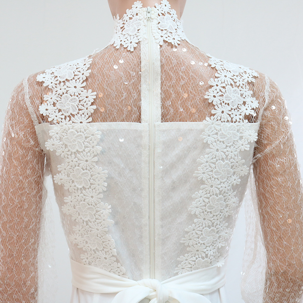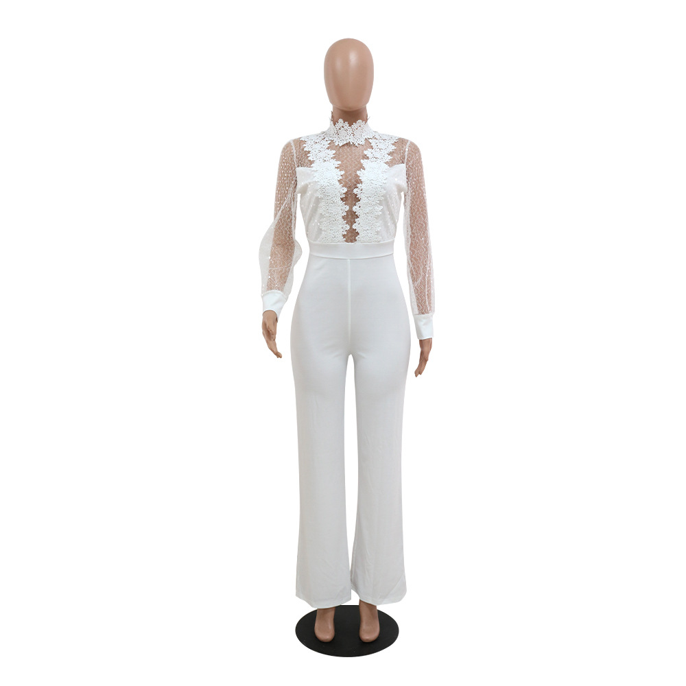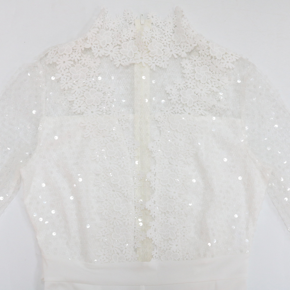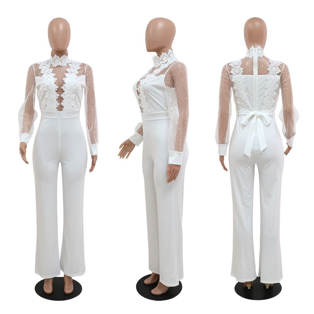 Party Turtleneck Sequin Lace Sheer Long Sleeve Top Loose Jumpsuit Women