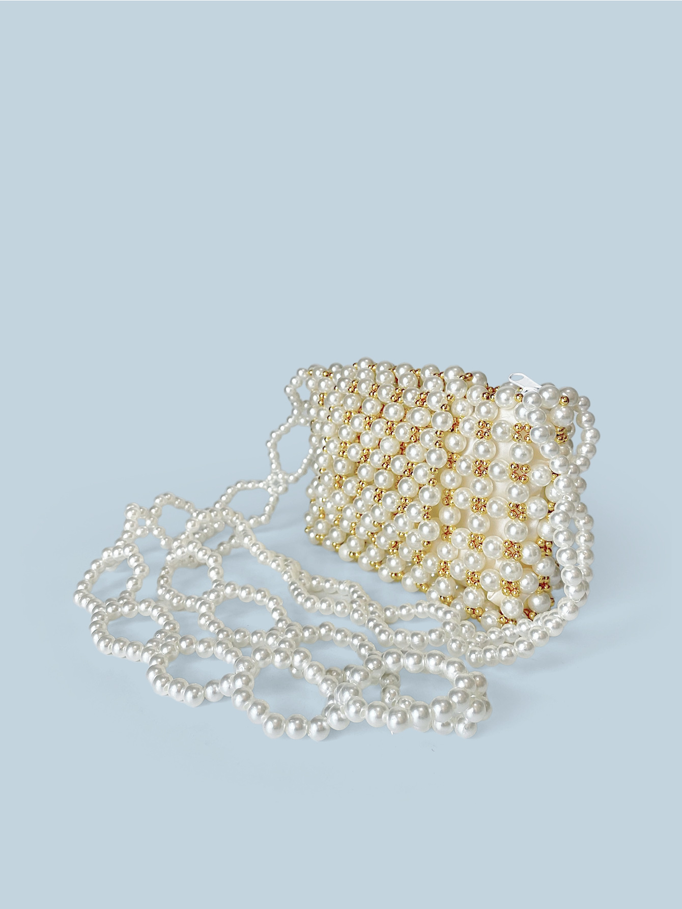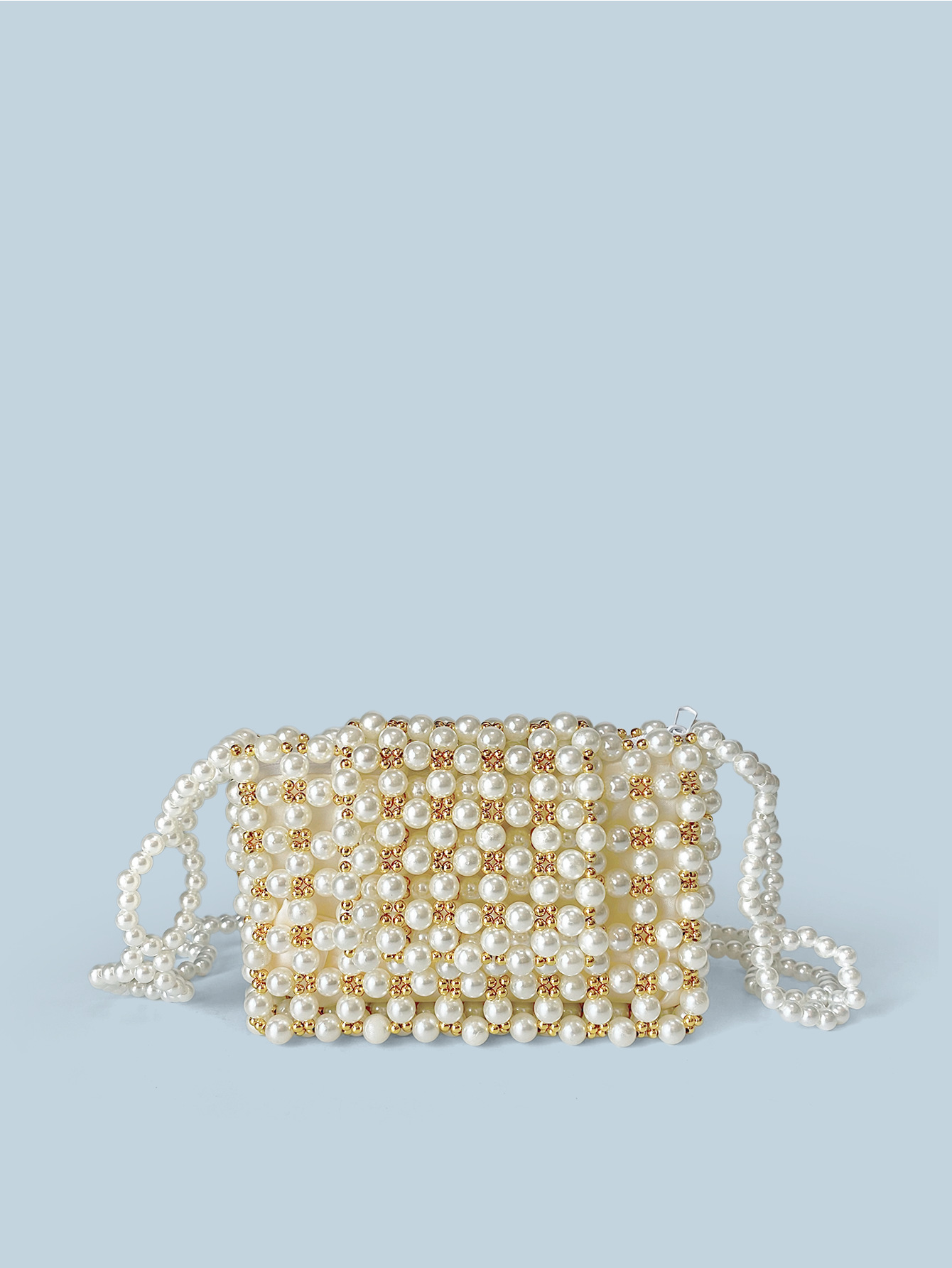 Pearl Bag Golden French One Shoulder Bag Casual Handmade Beaded Bag