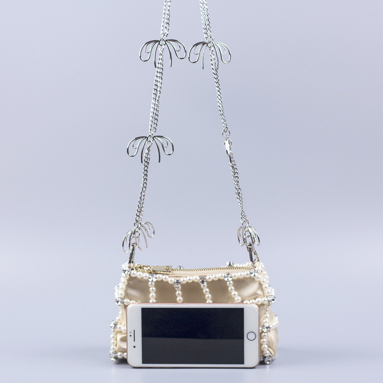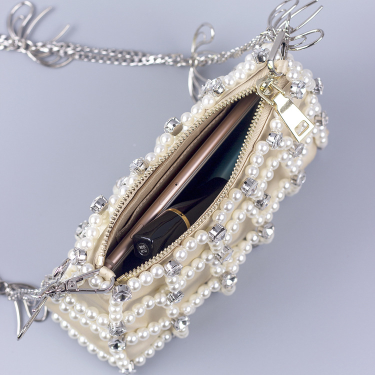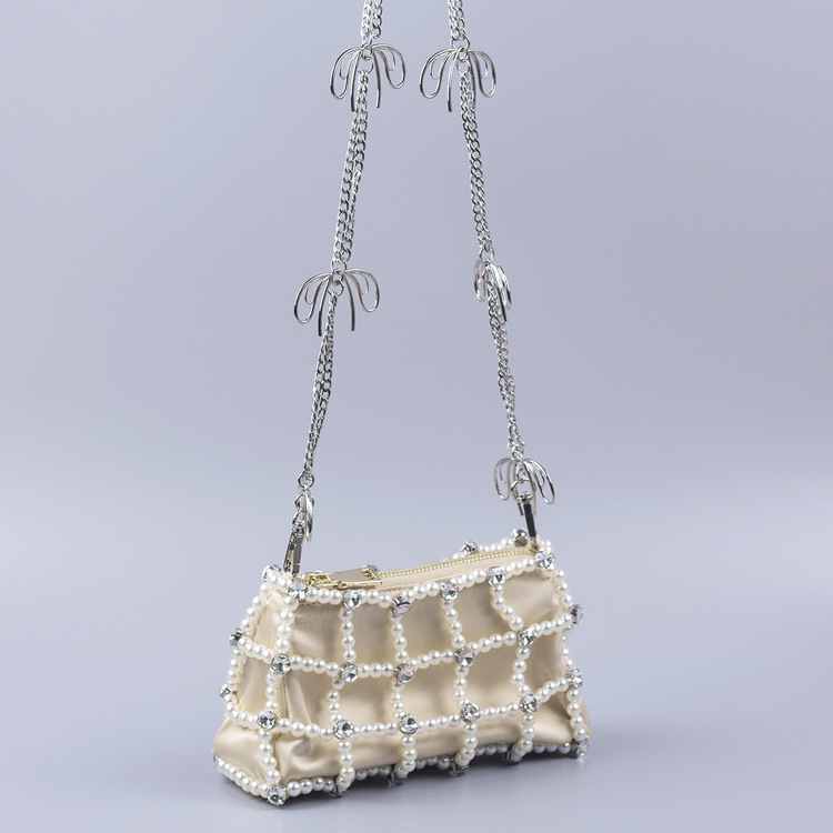 Pearl Hollowed out Plaid Crossbody Chain Bag Handmade Beaded Bag Special Interest Women Bag Direct