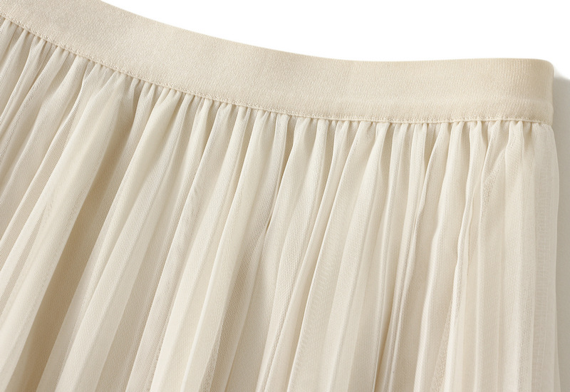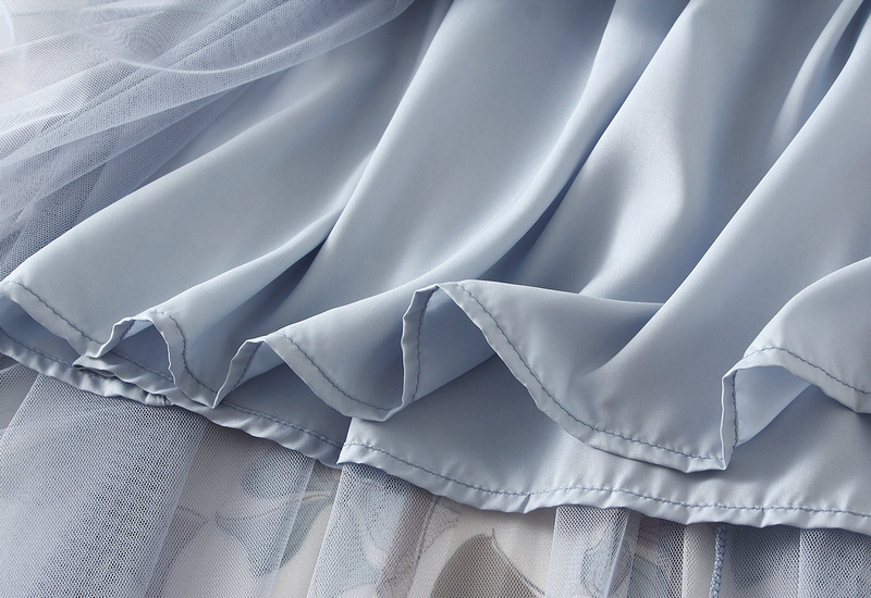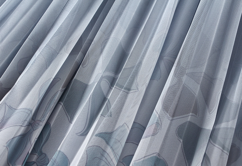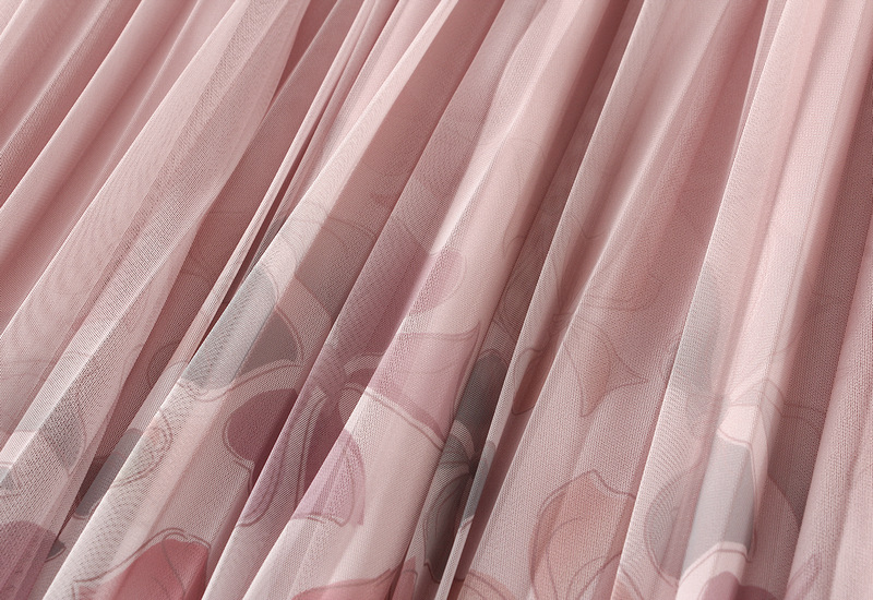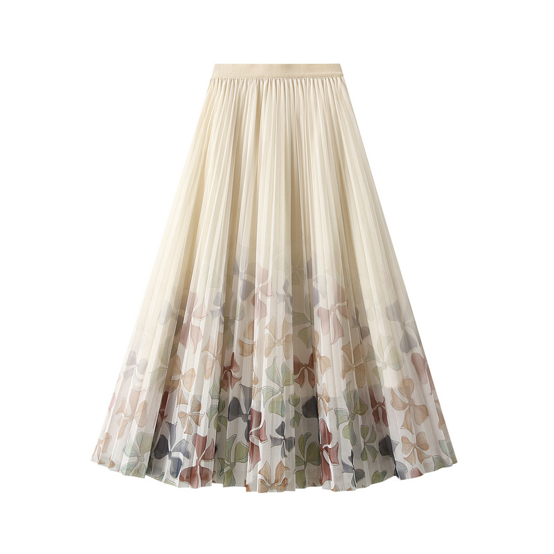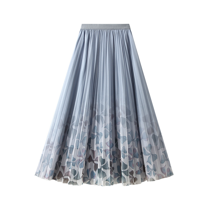 Printed Mesh Skirt Women Spring Summer Floral Gauze Skirt Mid Length Drape Pleated Skirt