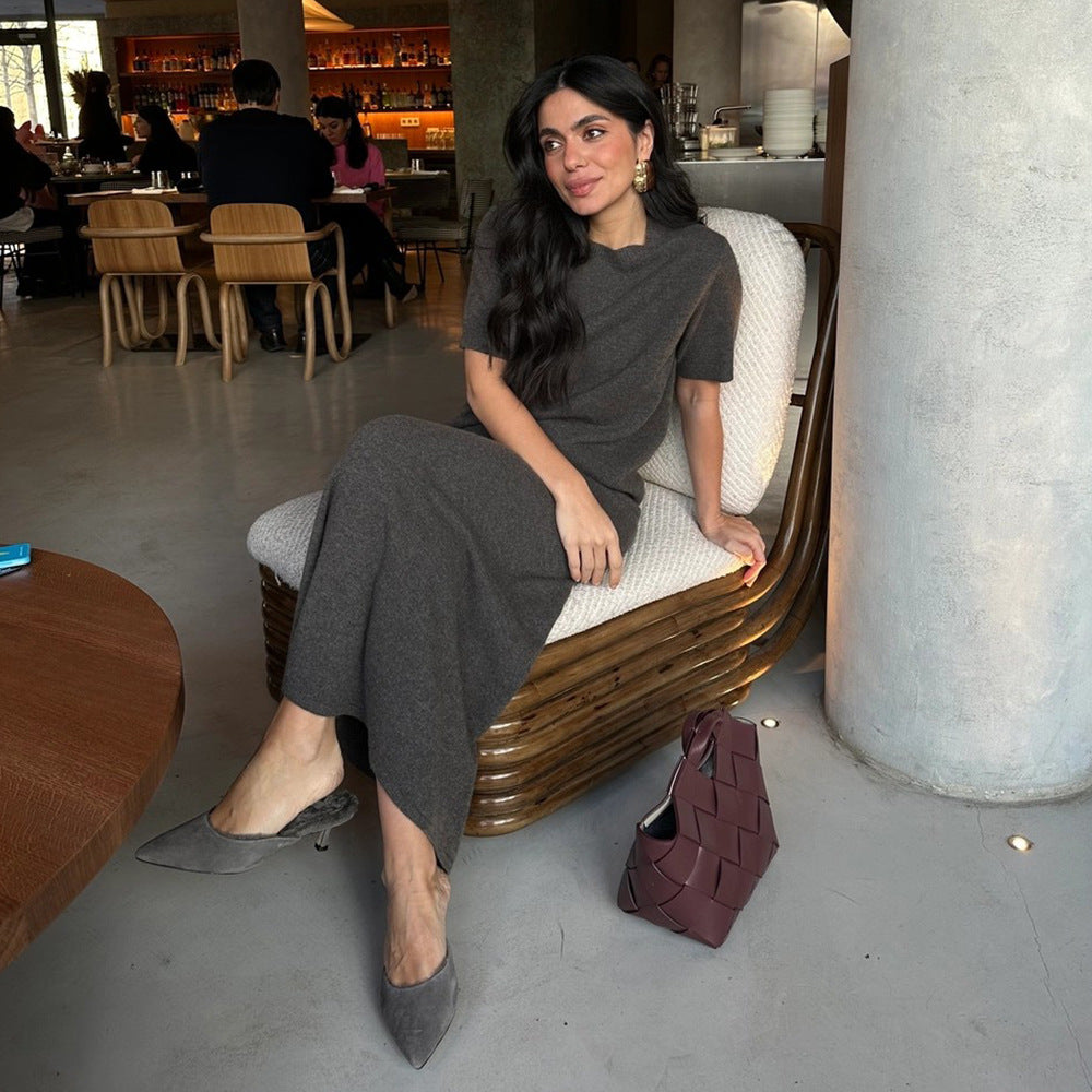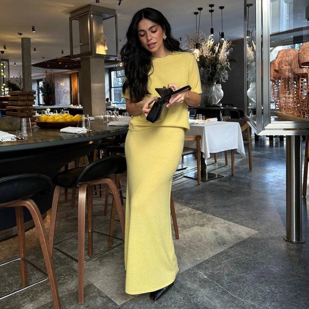 Pullover Short Sleeve Skirt Set Summer Knitting Solid Color Simple Set