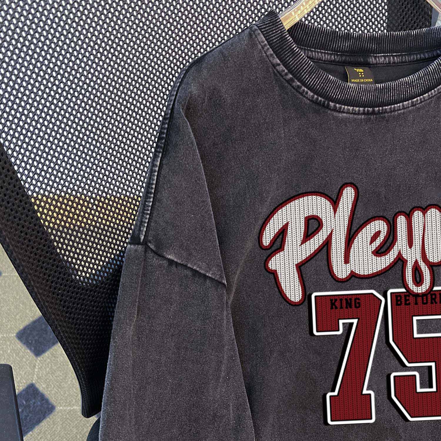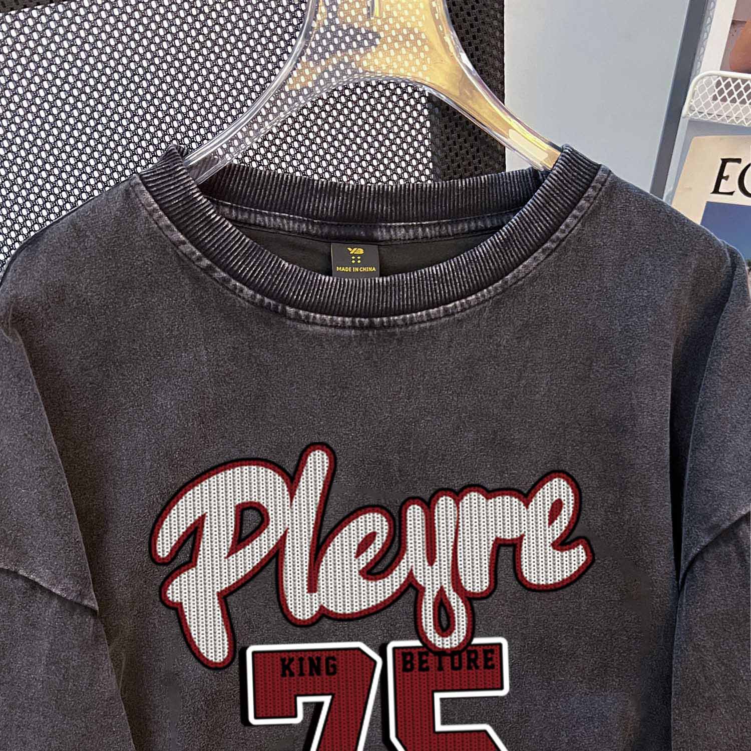 Pure Cotton Cotton Composite Wash Vintage Long T Shirt Special Interest Design Washed Distressed Waxed round Neck Sweater