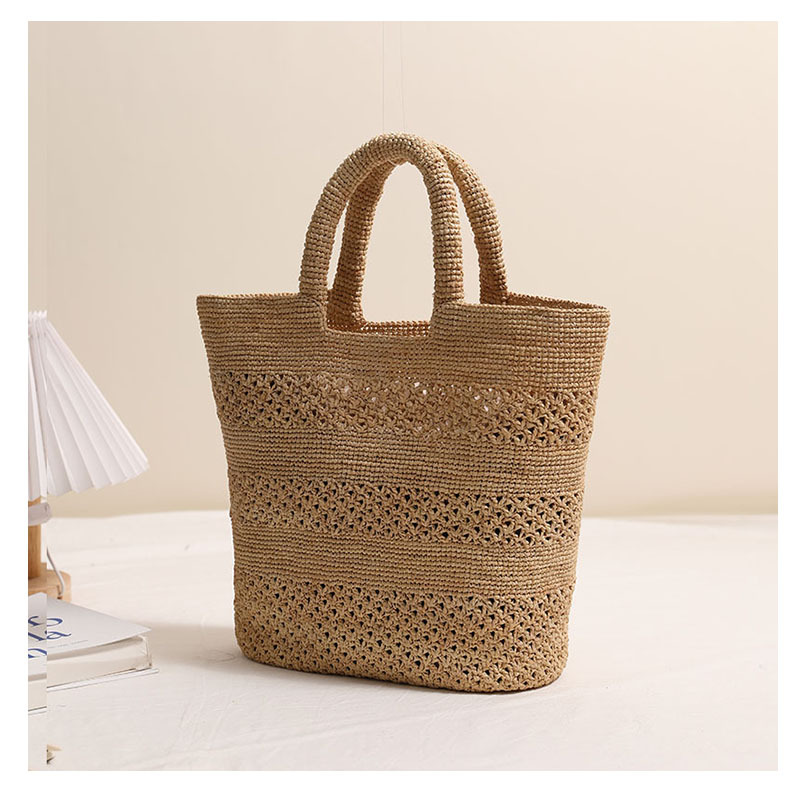 Raffia Portable Straw Weaved Bag Hand Carrying Large Capacity Hollow Out Cutout Woven Bag Seaside Vacation Beach Bag