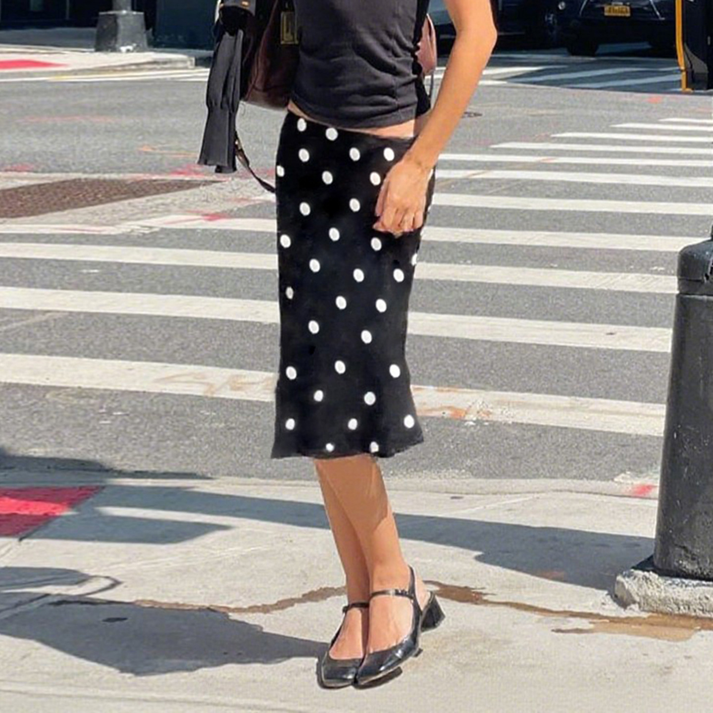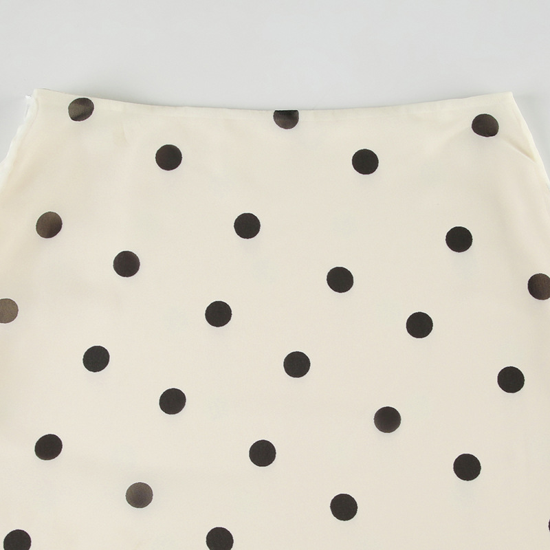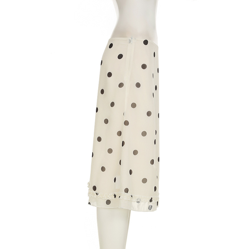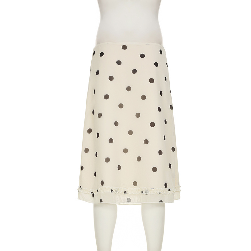 Retro Dots Wooden Ear Street Contrast Color Low Waist All Match Swing Midi Skirt