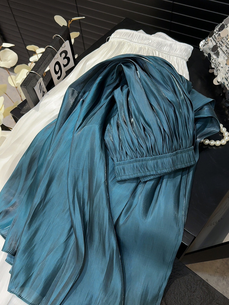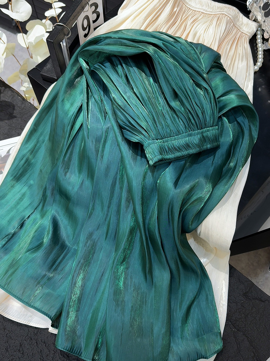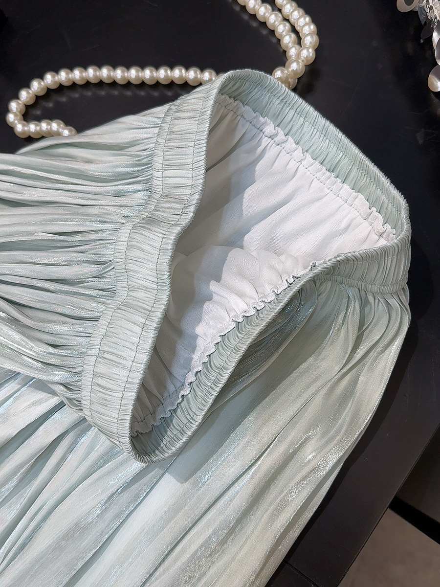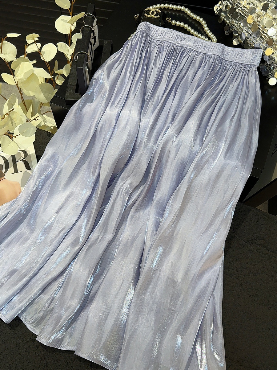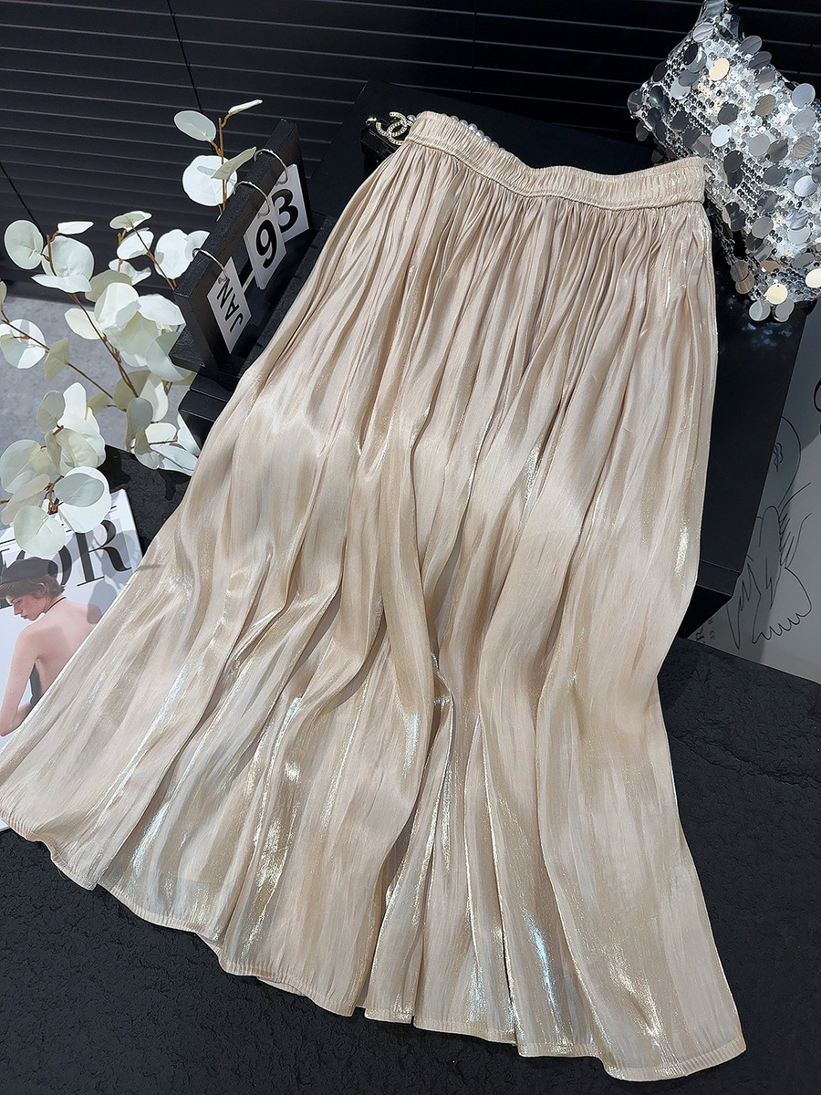 Retro Fashionable Pleated Drooping Slimming High Waist A line Skirt High Grade Glossy Pearlescent Chiffon Pleated Skirt
