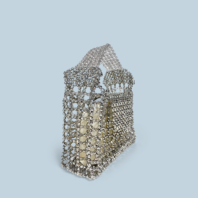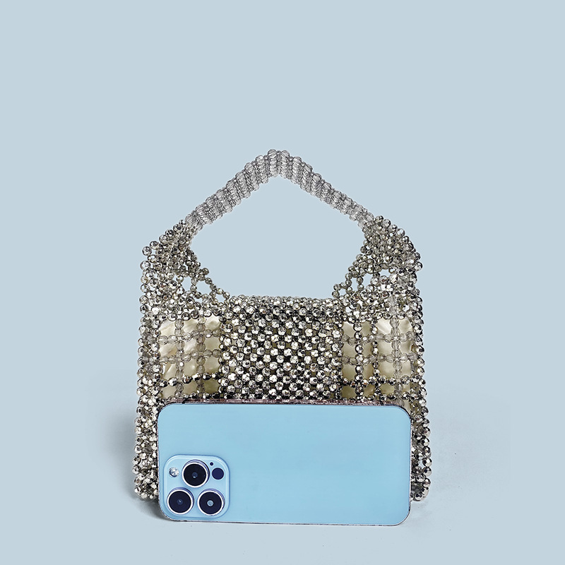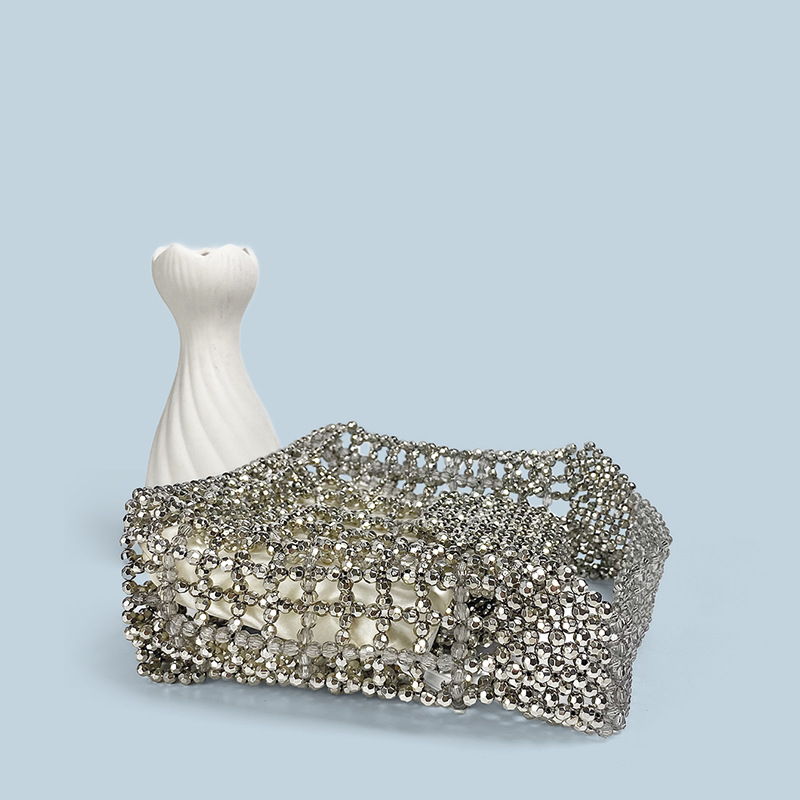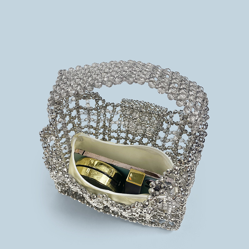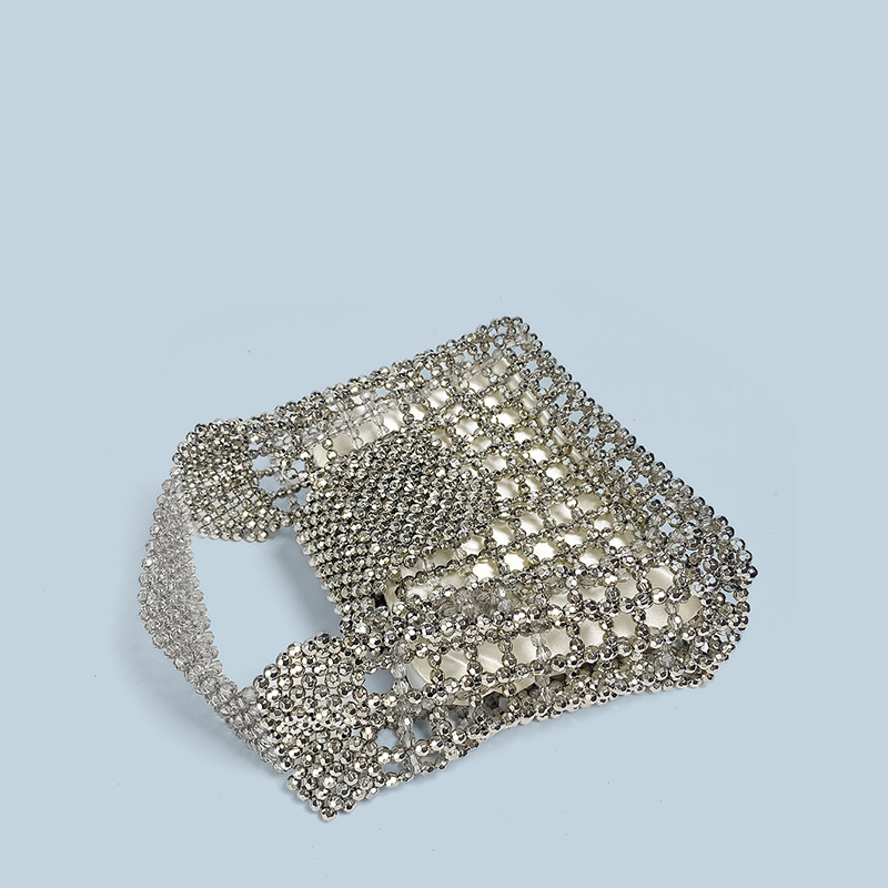 Retro Hollow Out Cutout Metal Silver Hand Woven Beads Small Square Bag Change Mobile Phone Bag Small Handbag