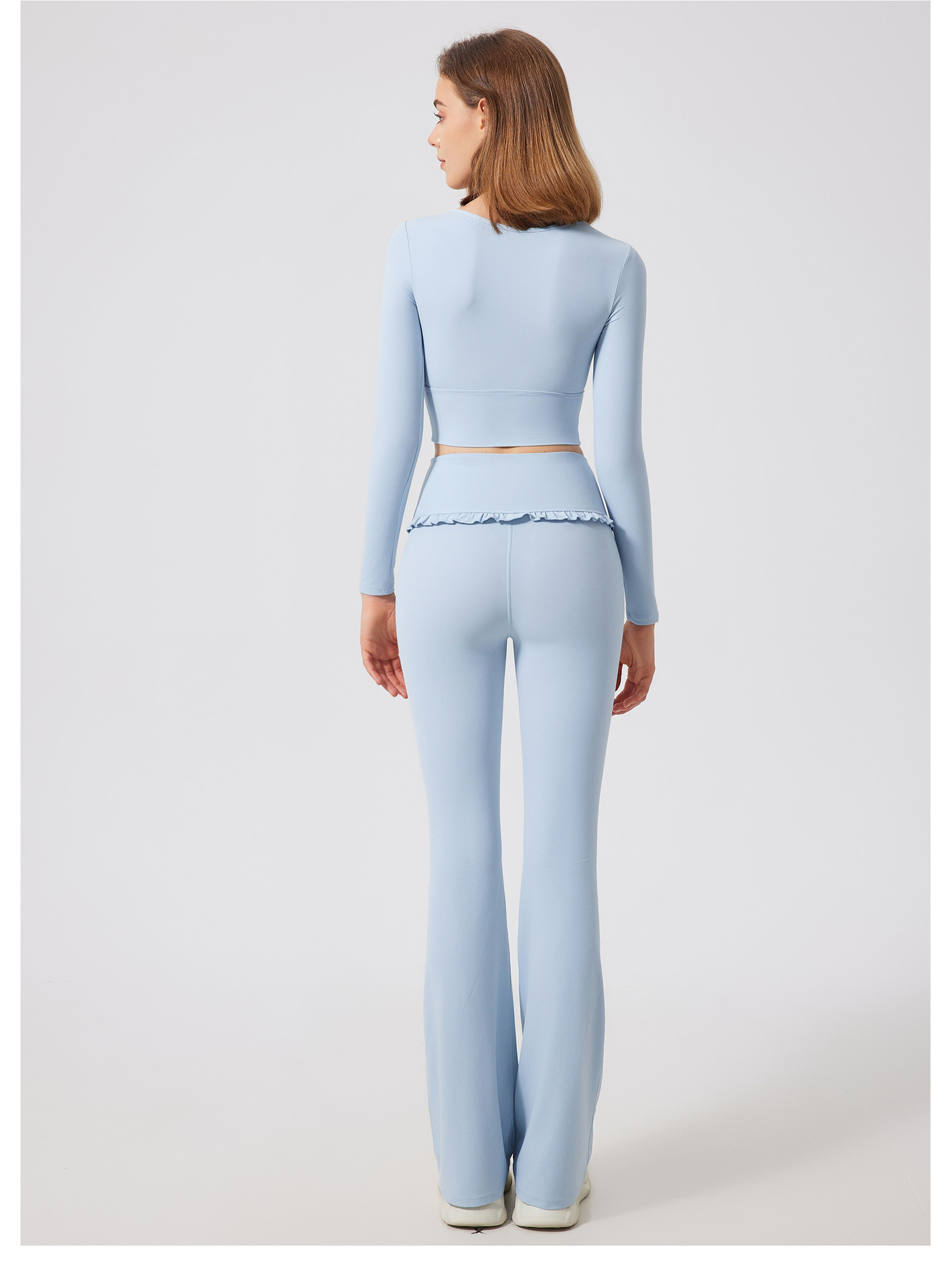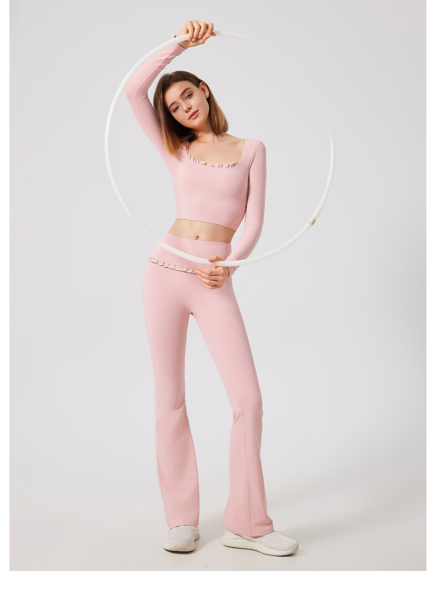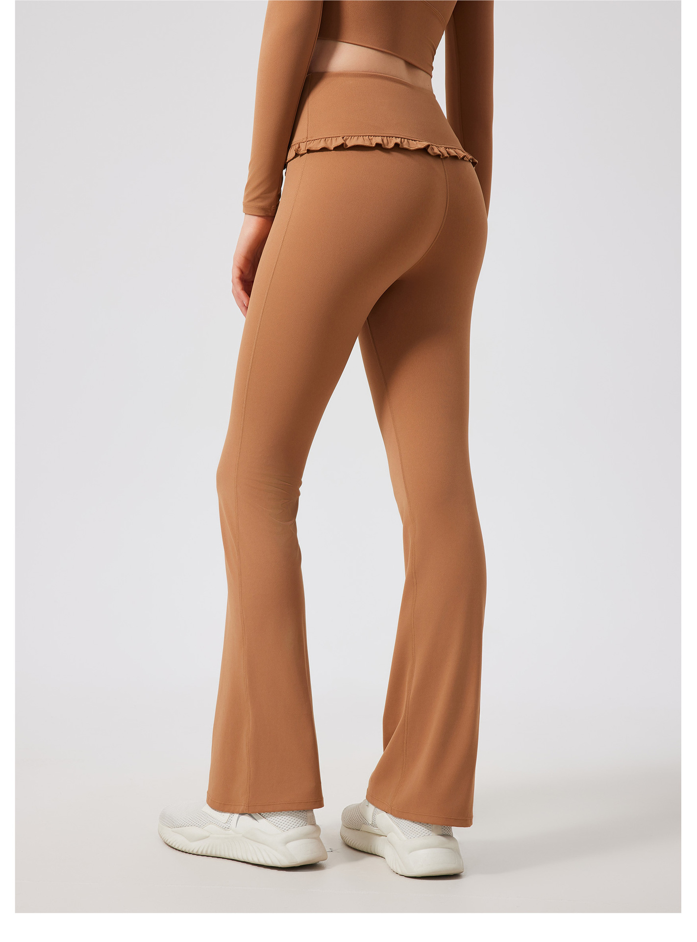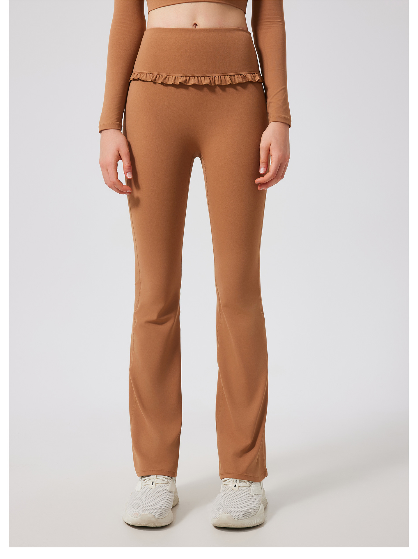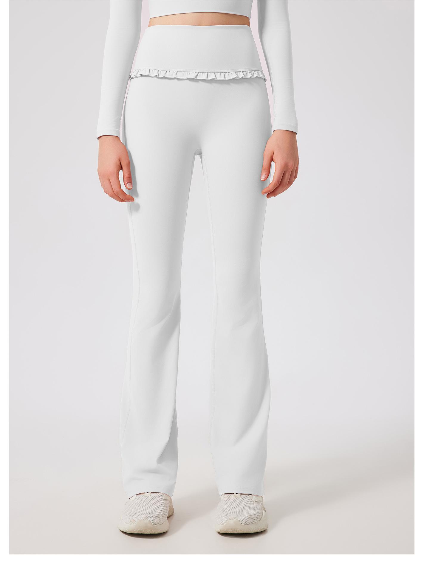 Ruffled Skinny Yoga Pants Women High Waist Slimming Sports Bell Bottom Pants Slim Fit Breathable Casual Fitness Trousers