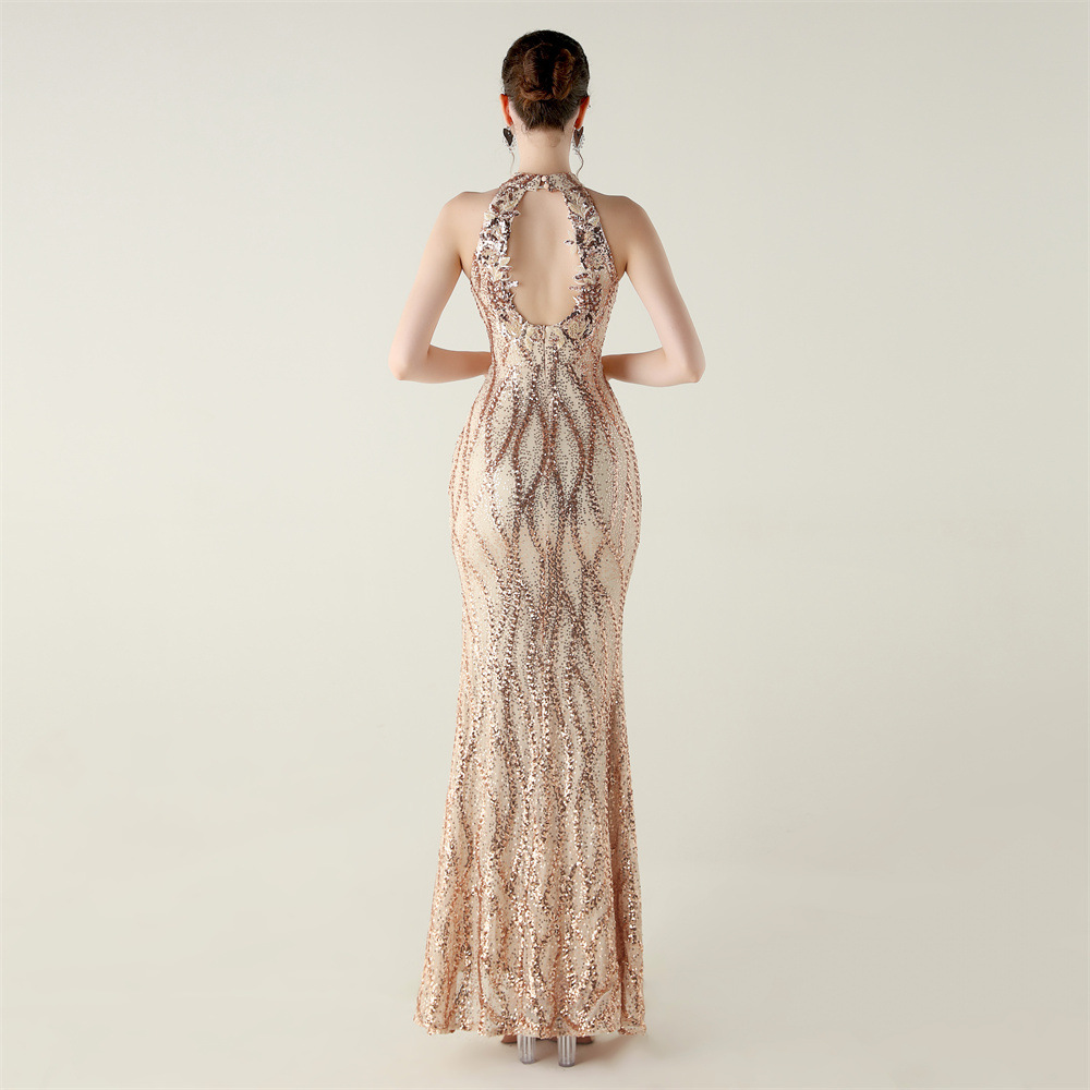 Sequin Mesh Heavy Industry Beaded Tube Floral Evening Dress Sexy Backless Fishtail Party Dinner Party Red Carpet