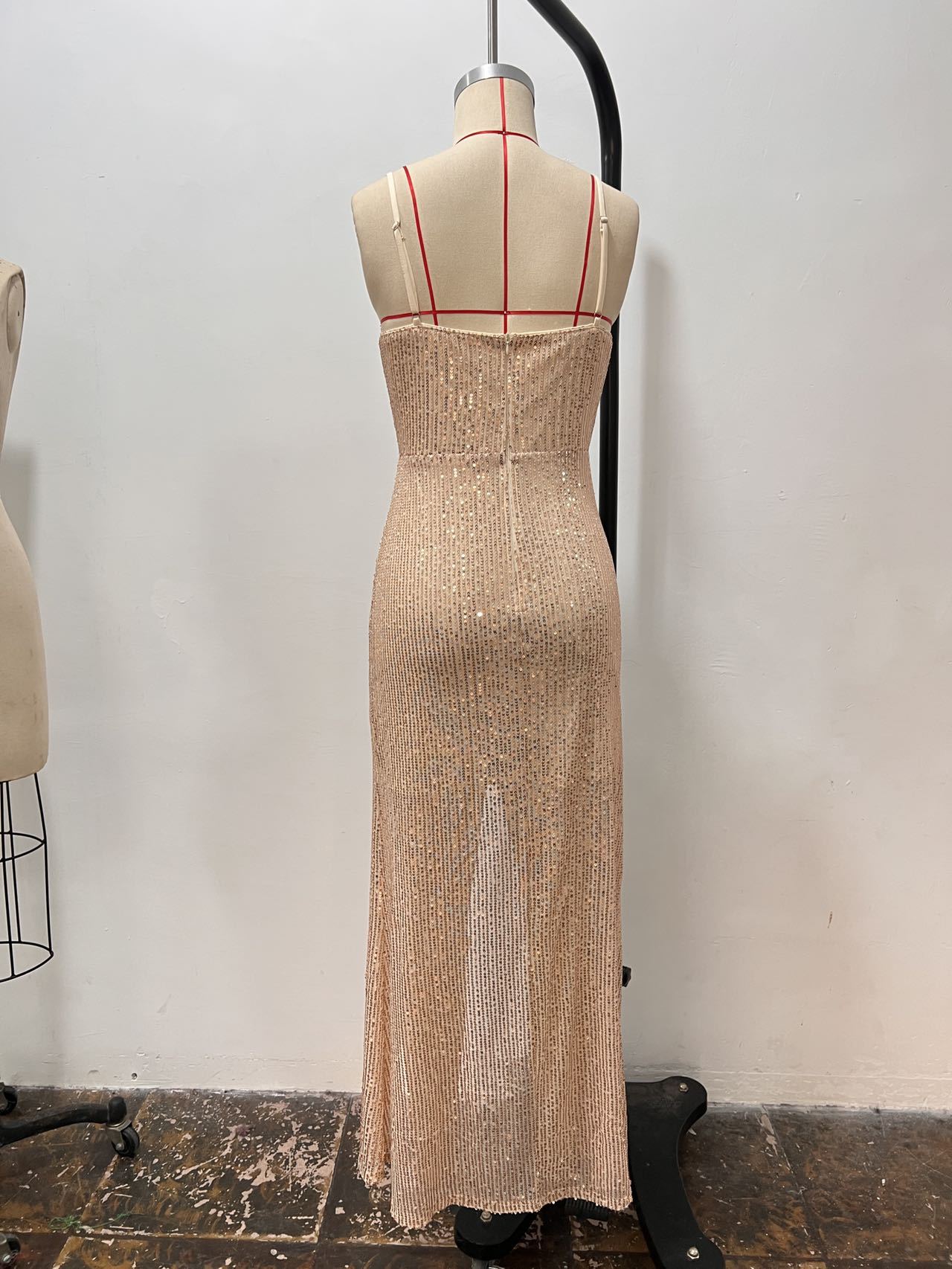 Sequined Slit Sexy Sling Long Sequin Evening Dress