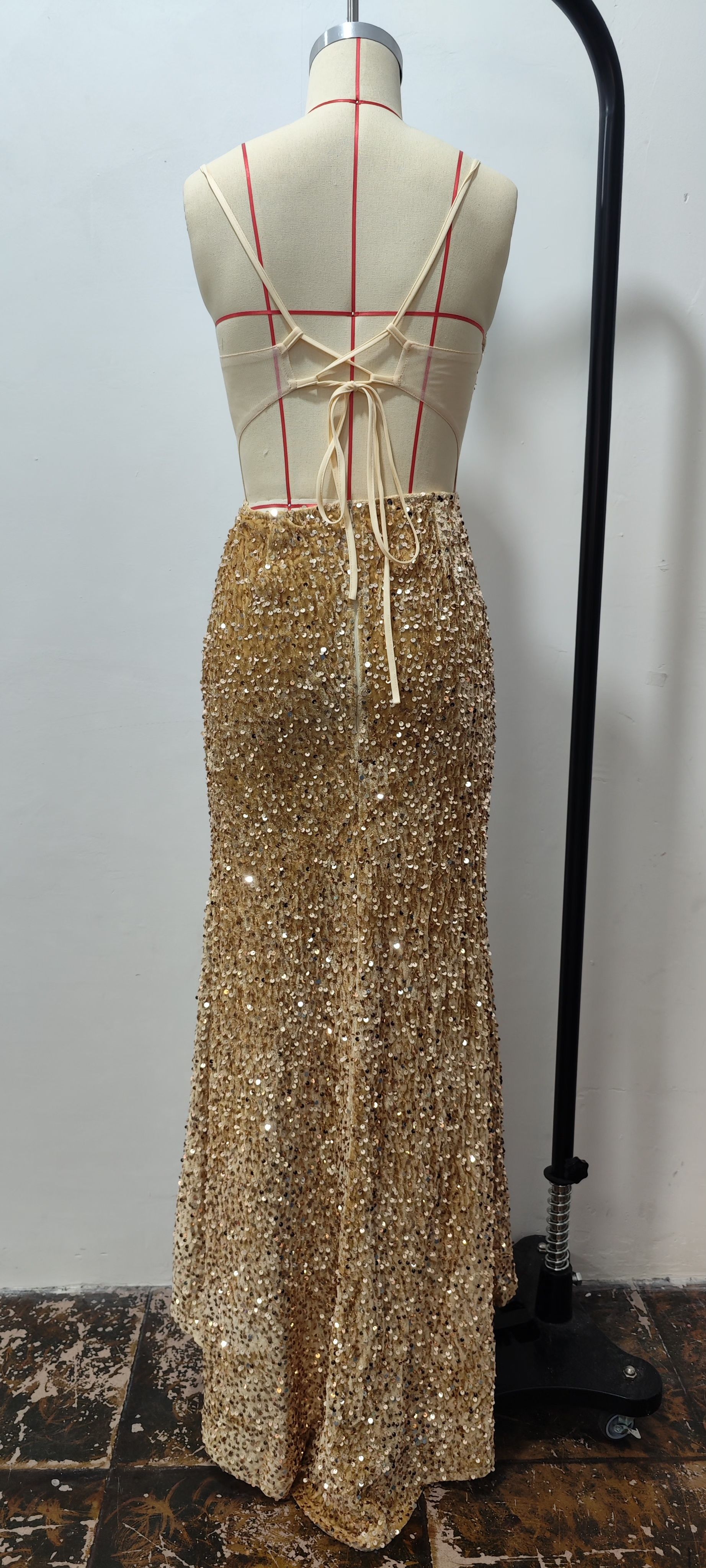 Sequined Split Sexy Sling Dress Waist Controlled Cocktail Dress Slim Fit Maxi Dress