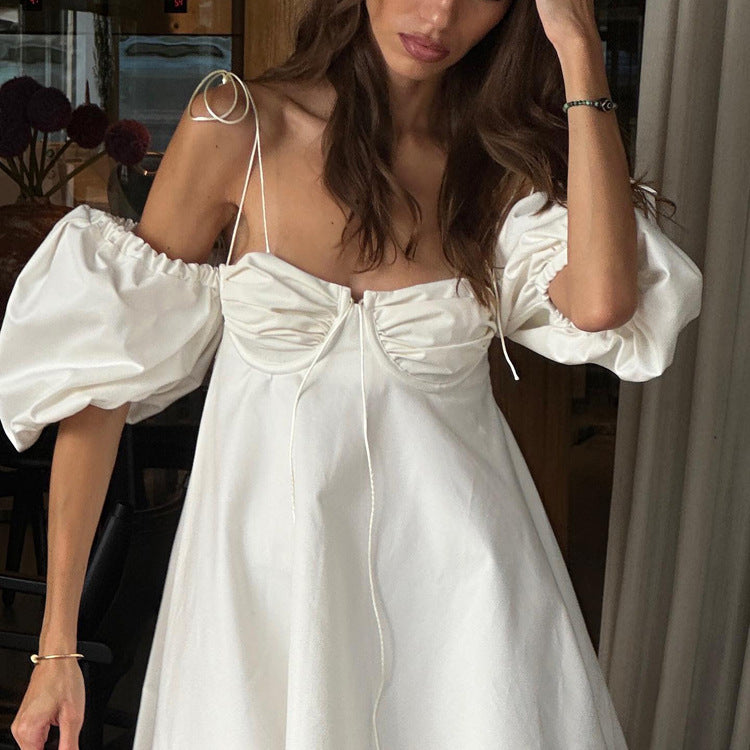 Sexy Low Cut off Neck Bubble Sleeve Tube Top Dress Sexy Backless White Cami Dress