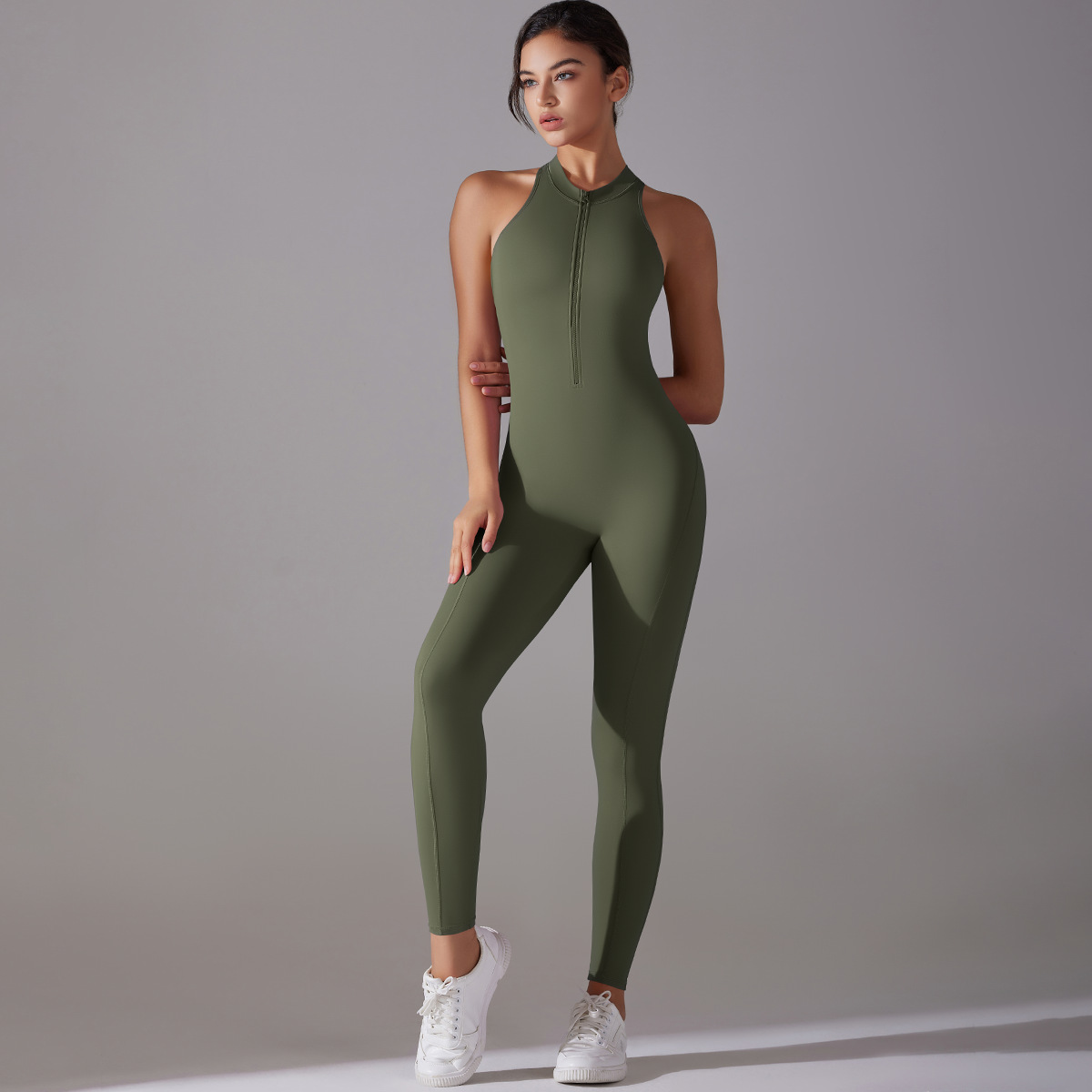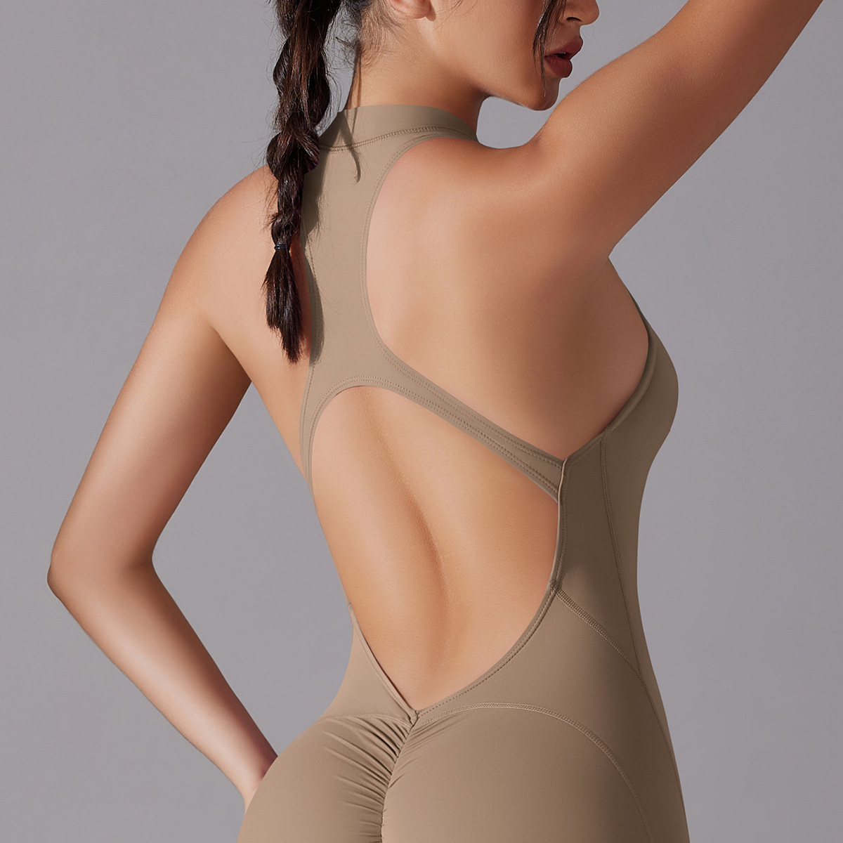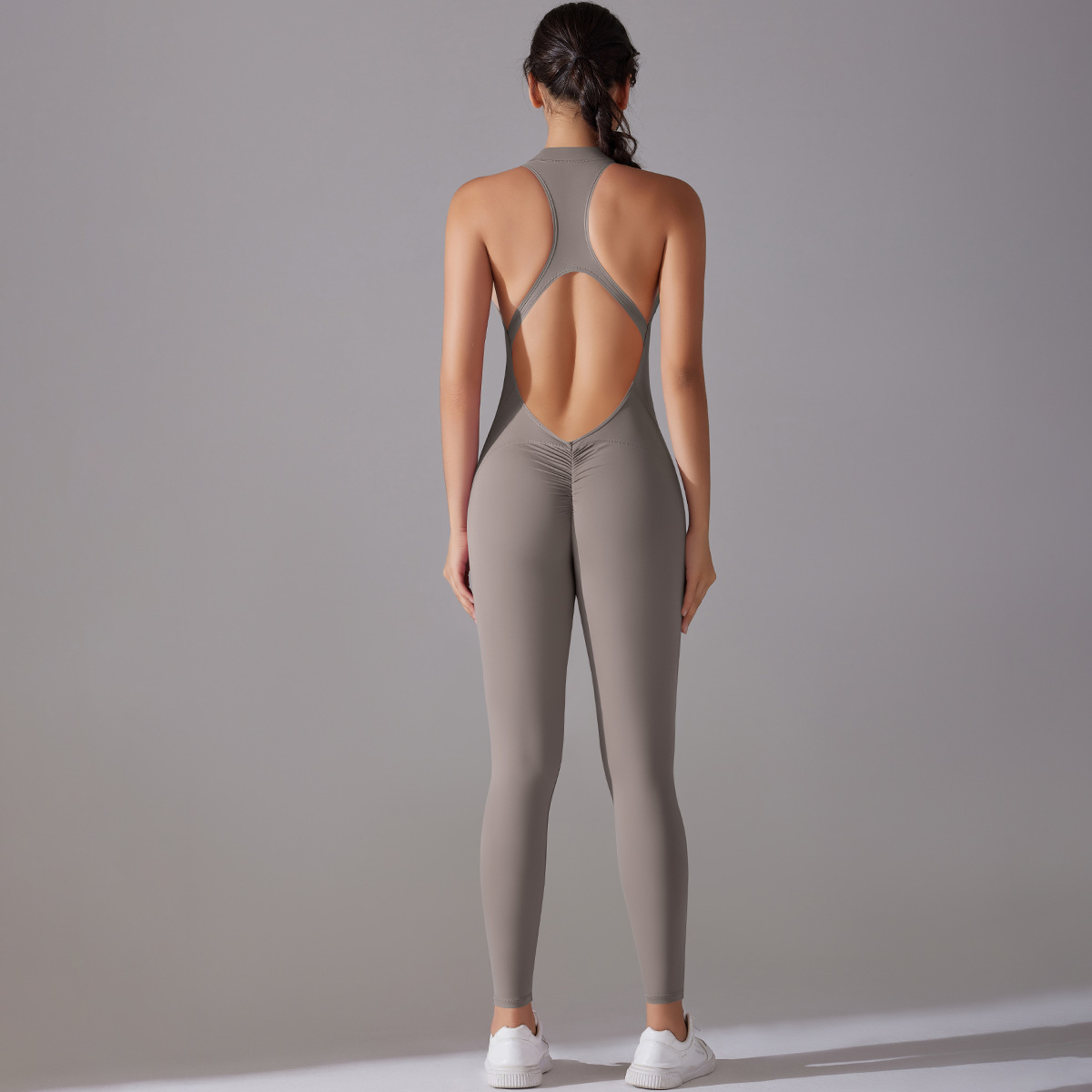 Shaping One Piece Zipper Yoga Clothes One Piece Belly Contracting Close Fitting Hollow Out Cutout Sports Back Shaping Jumpsuit Yoga Pants