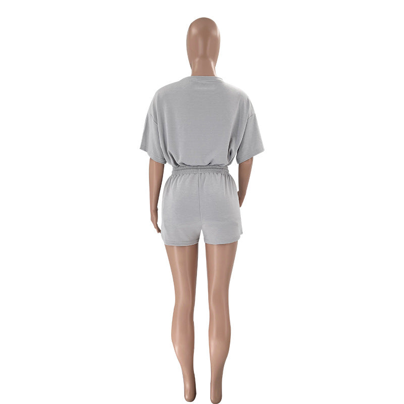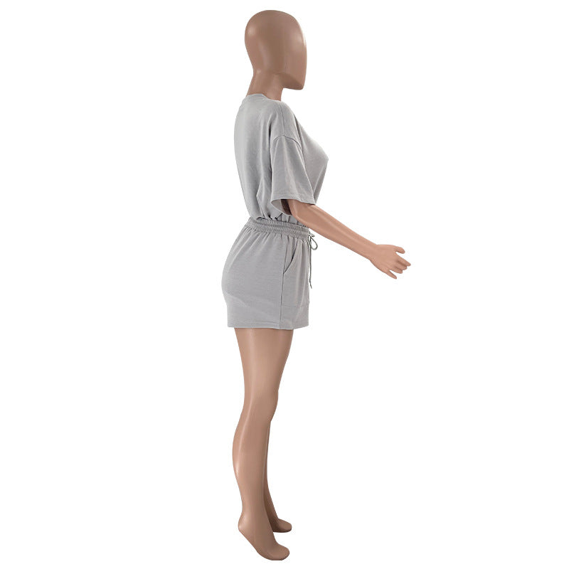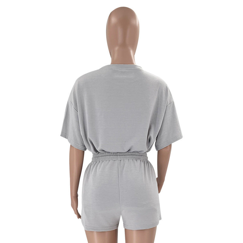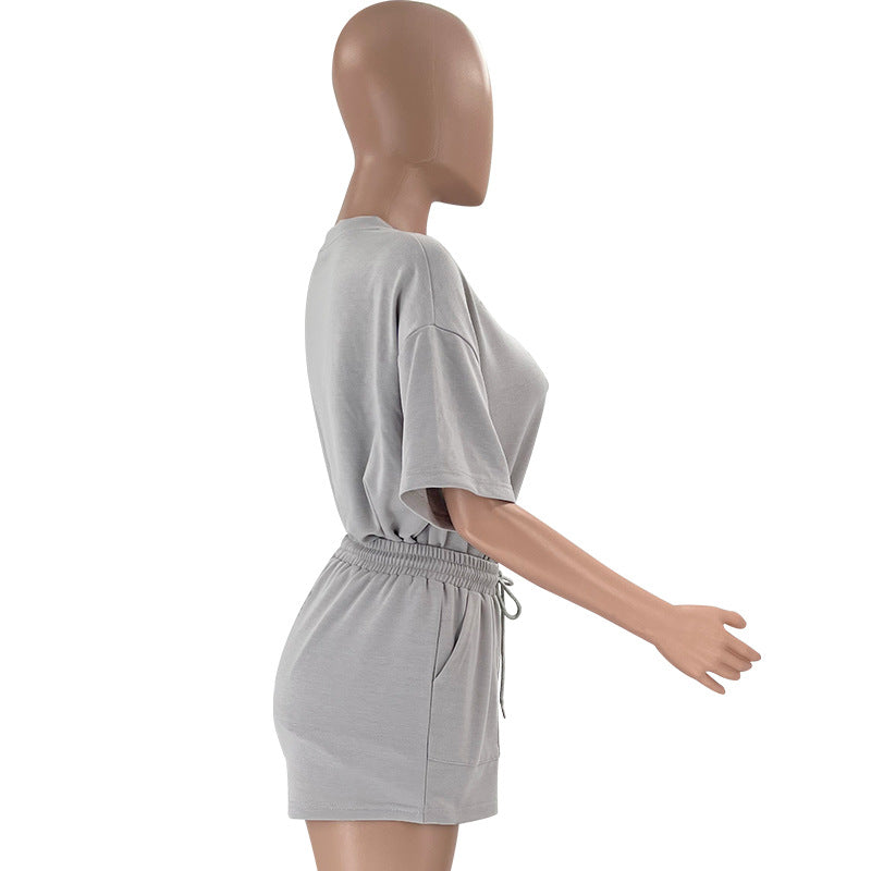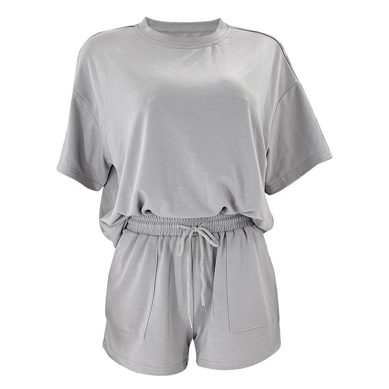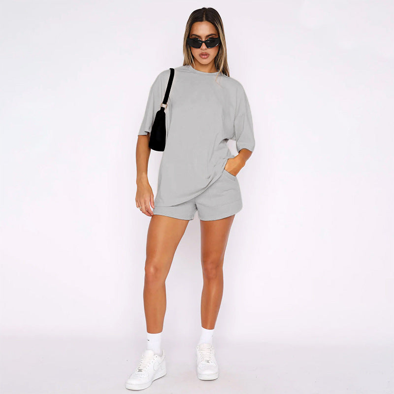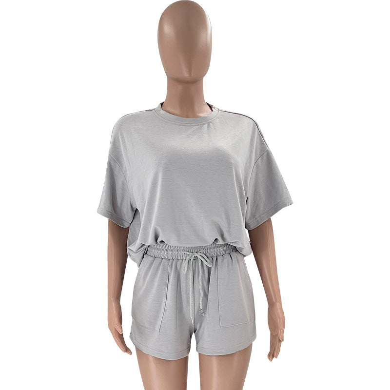 Solid Color round Neck Half Sleeve Pullover Top Women Clothing Casual Shorts Suit Summer