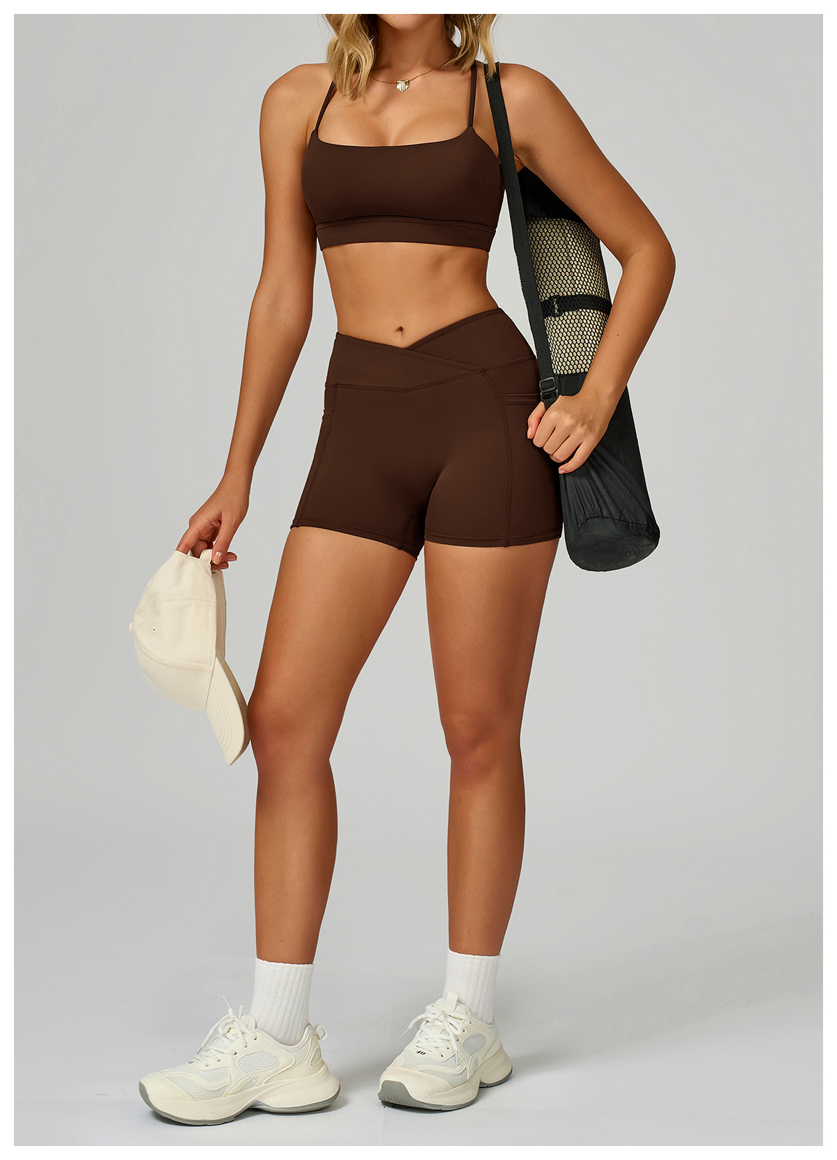 Sollinarry Nude Feel High Waist Yoga Shorts Cross Waist Skinny Yoga Pants Outdoor Running Cycling Sports