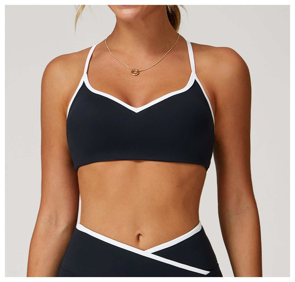 Sollinarry Nude Feel Yoga Bra Hollow Out Cutout out Beauty Back Contrast Color Quick Drying Bra Sports Running Workout Underwear