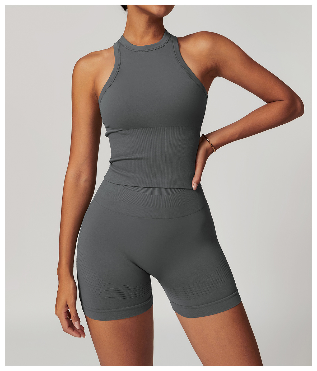 Sollinarry Seamless Tight I Shaped Beauty Back Yoga Vest One Piece Belly Covering Sports Top Yoga Clothes for Women
